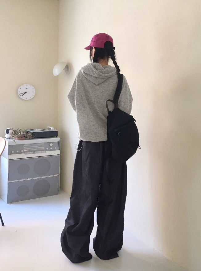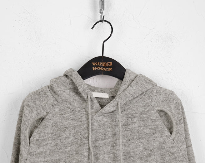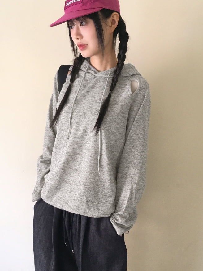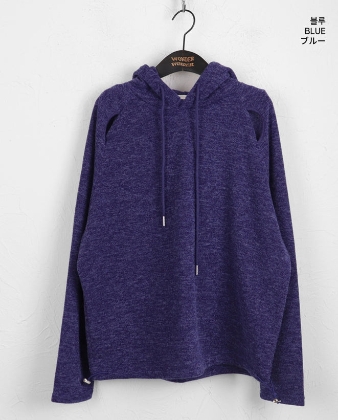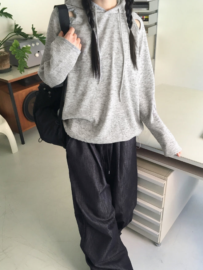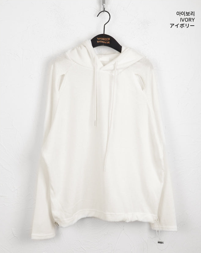 オンビーショルダースリットストリングボクシー長袖フーディ