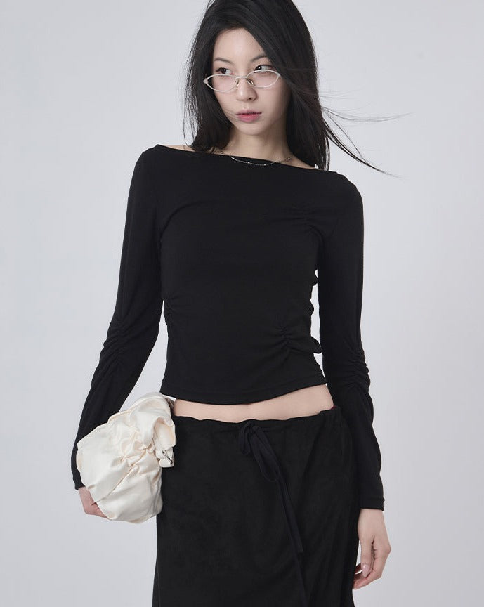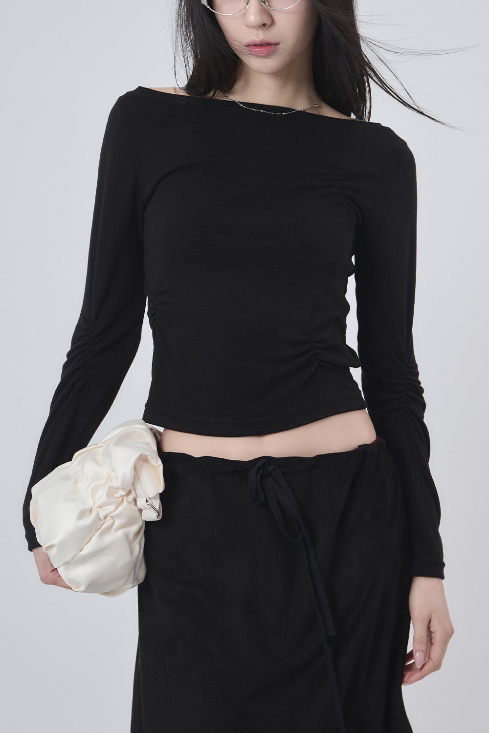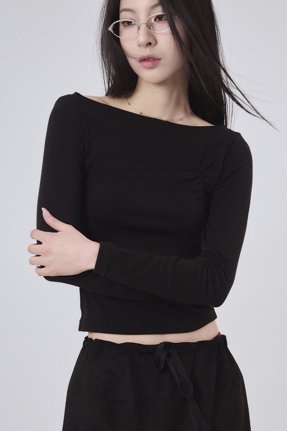 パーツシャーリングワイドネッククロップ長袖Tシャツ