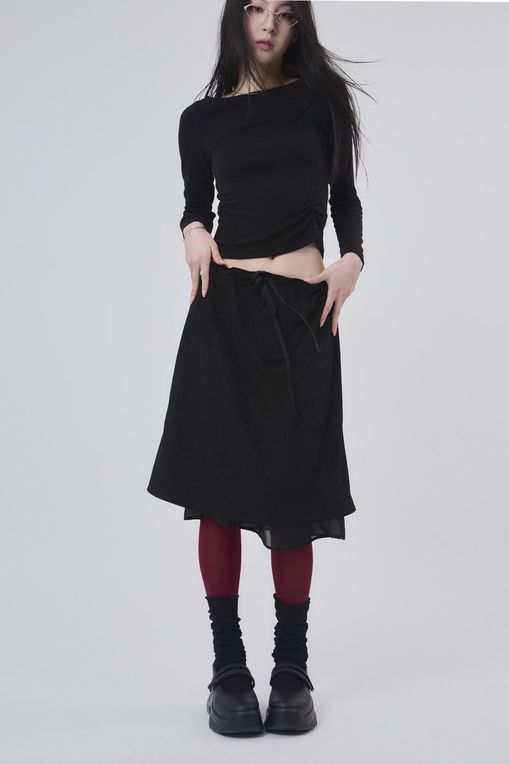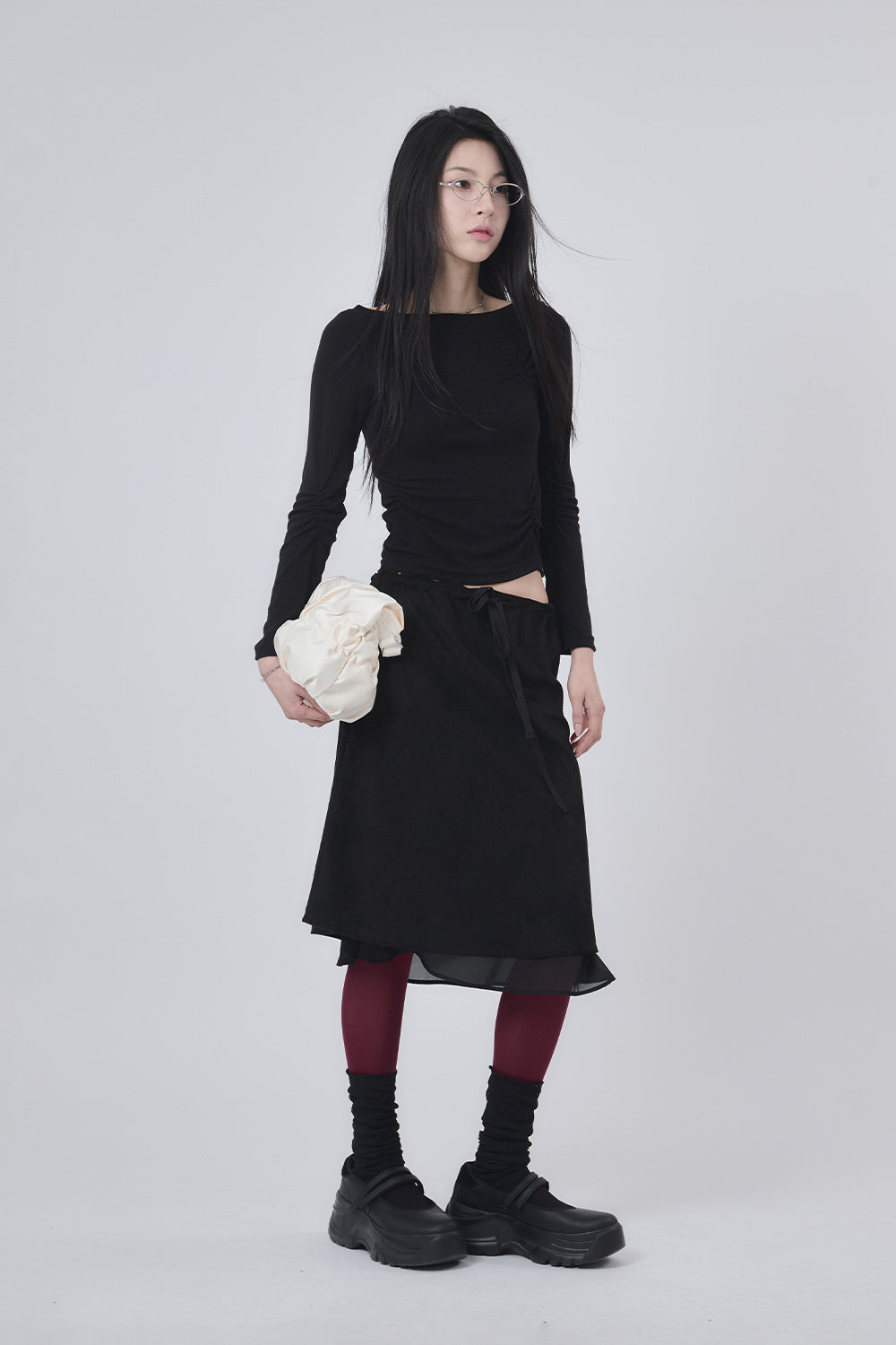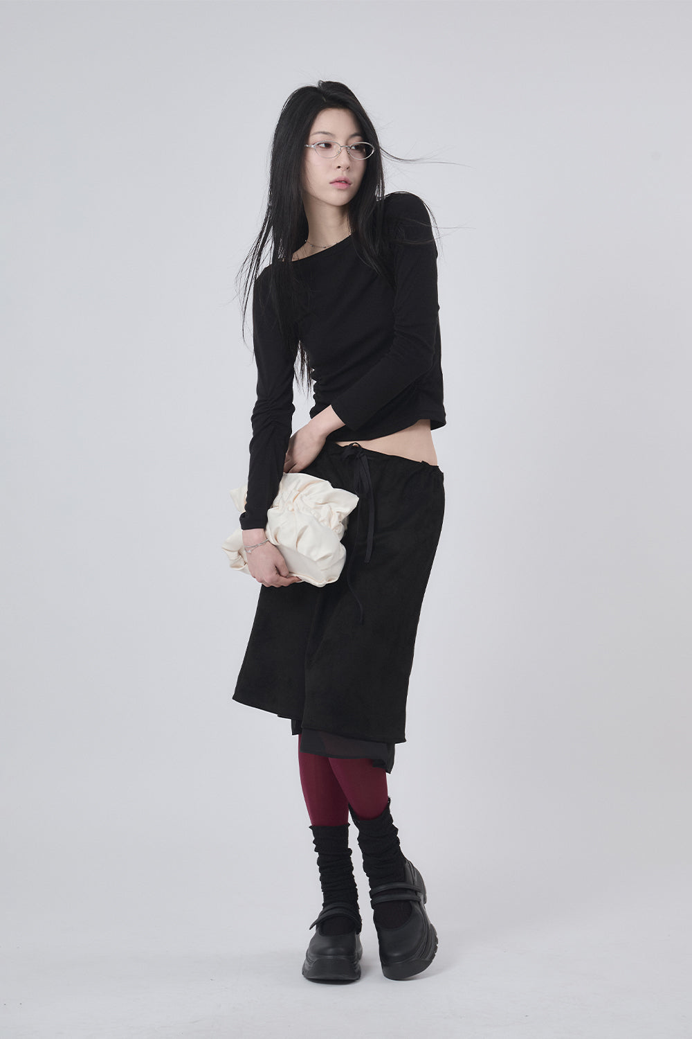 パーツシャーリングワイドネッククロップ長袖Tシャツ