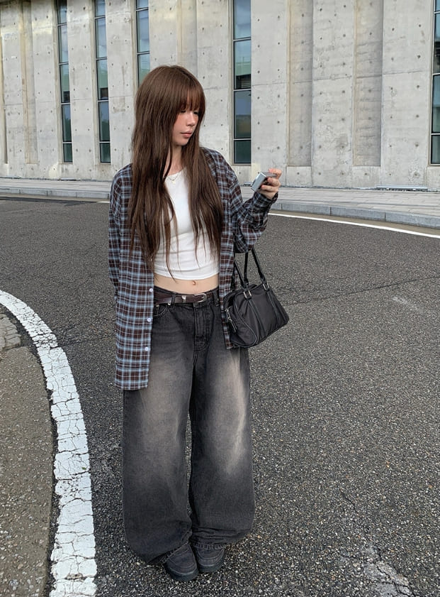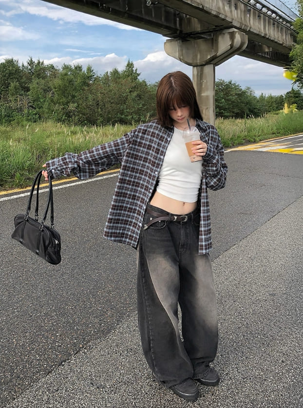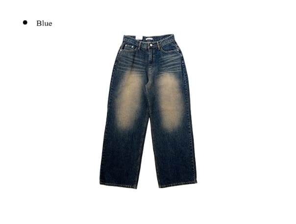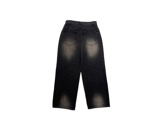 ペタルビンテージサンドウォッシュ加工デニムワイドパンツ