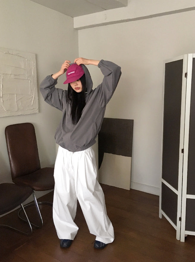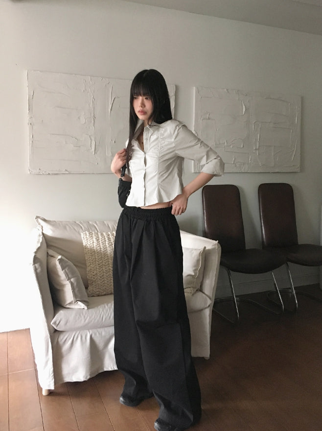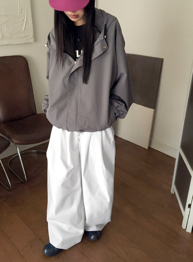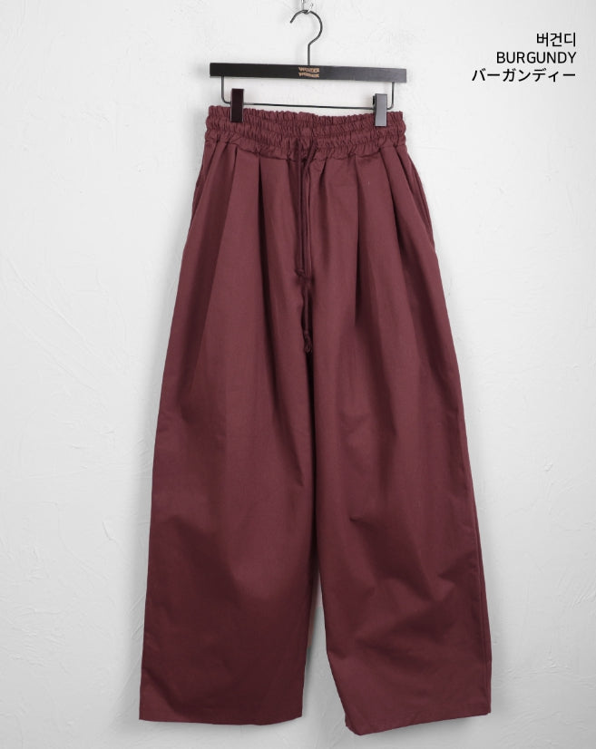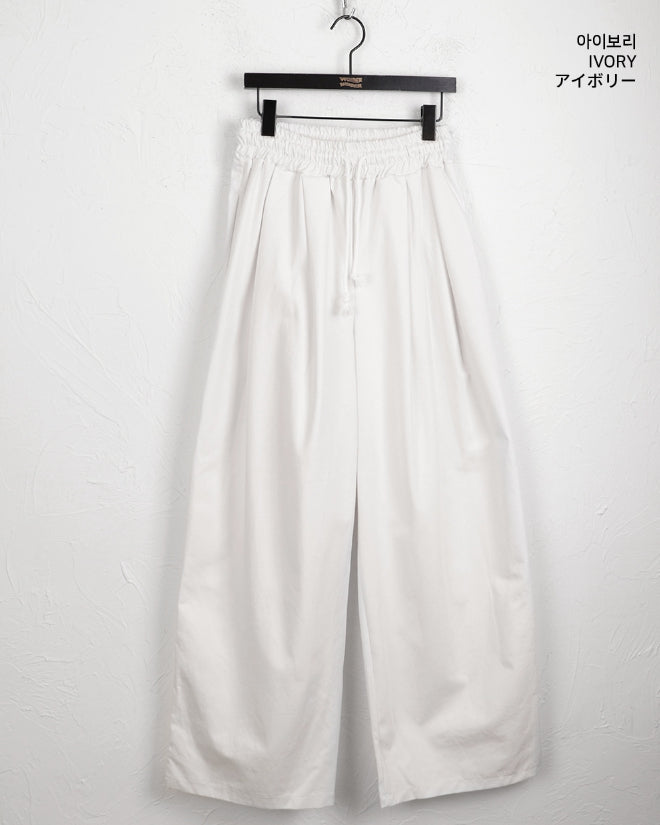 Peubit two-pin tuck banding cotton long wide pants