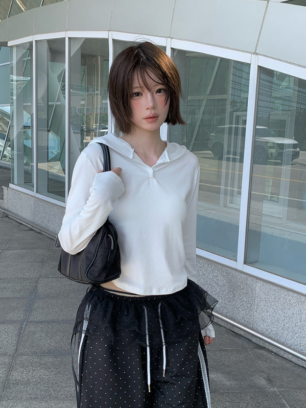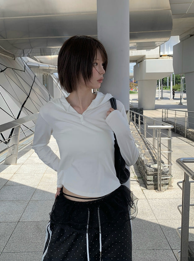 Poppy Button Slim Hood T-Shirt