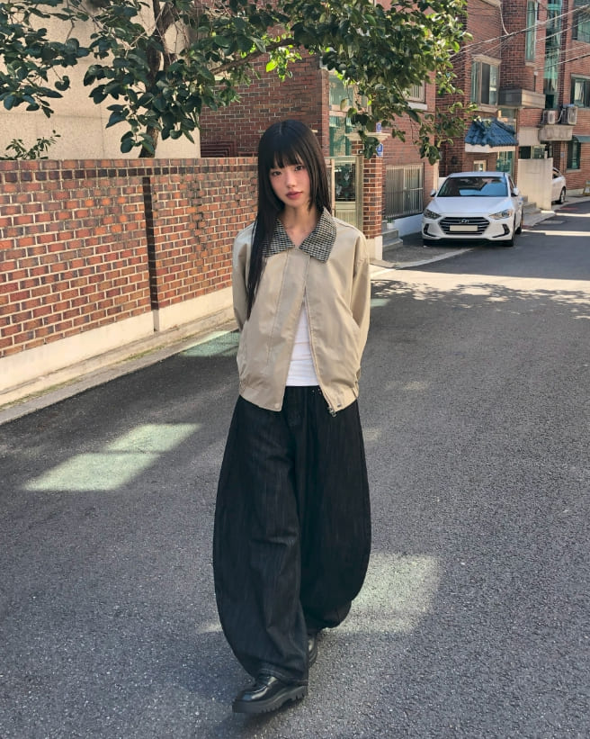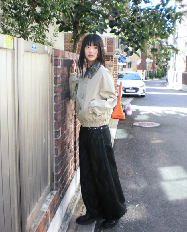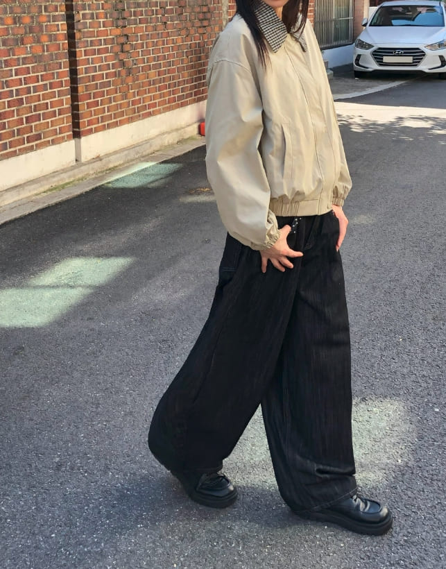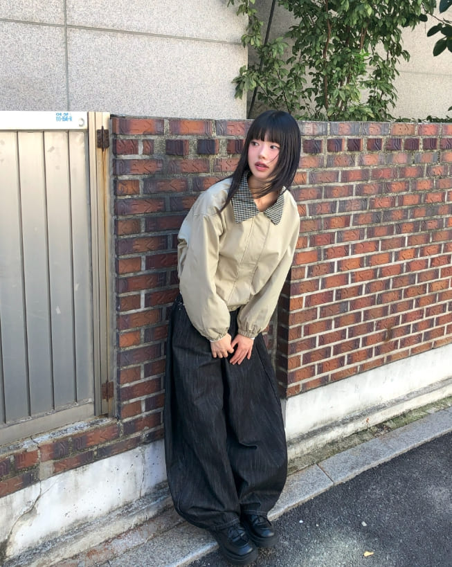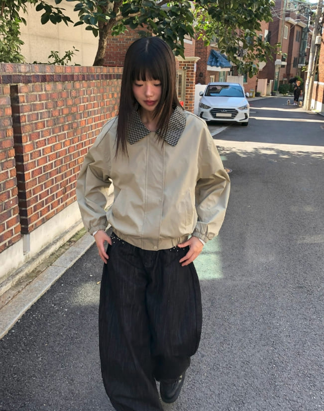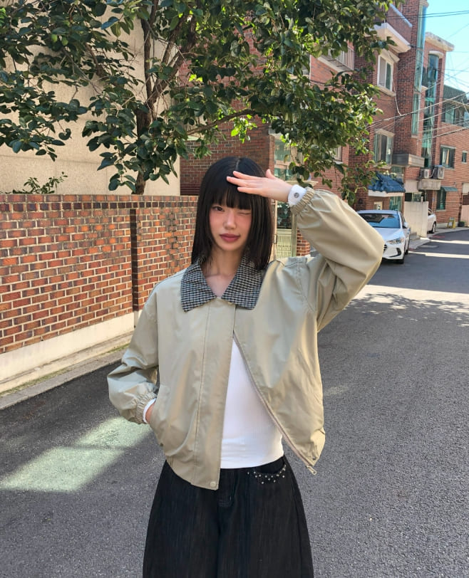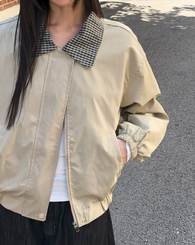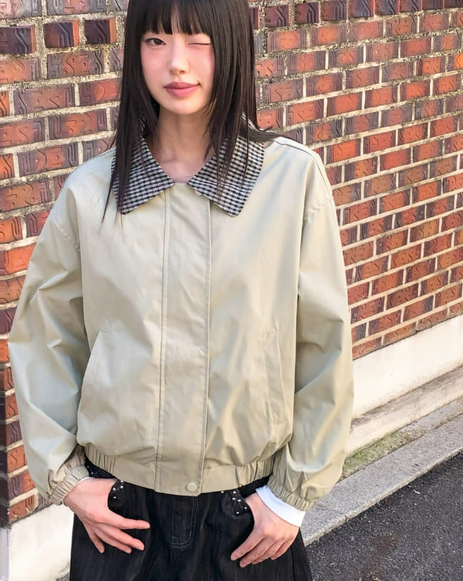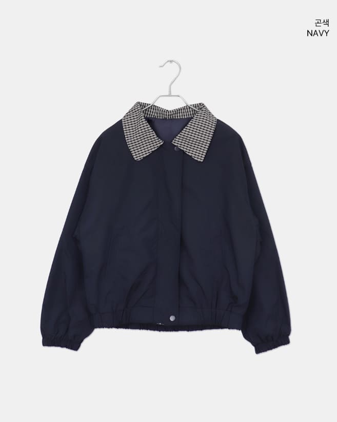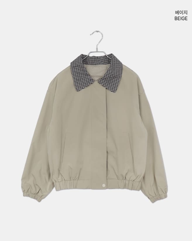 フジング配色チェック柄カラーコットン長袖ジャケット