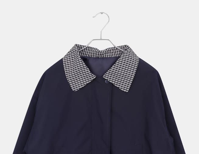 Puzzing Color Matching Check Pattern Collar Cotton Long Sleeve Jacket