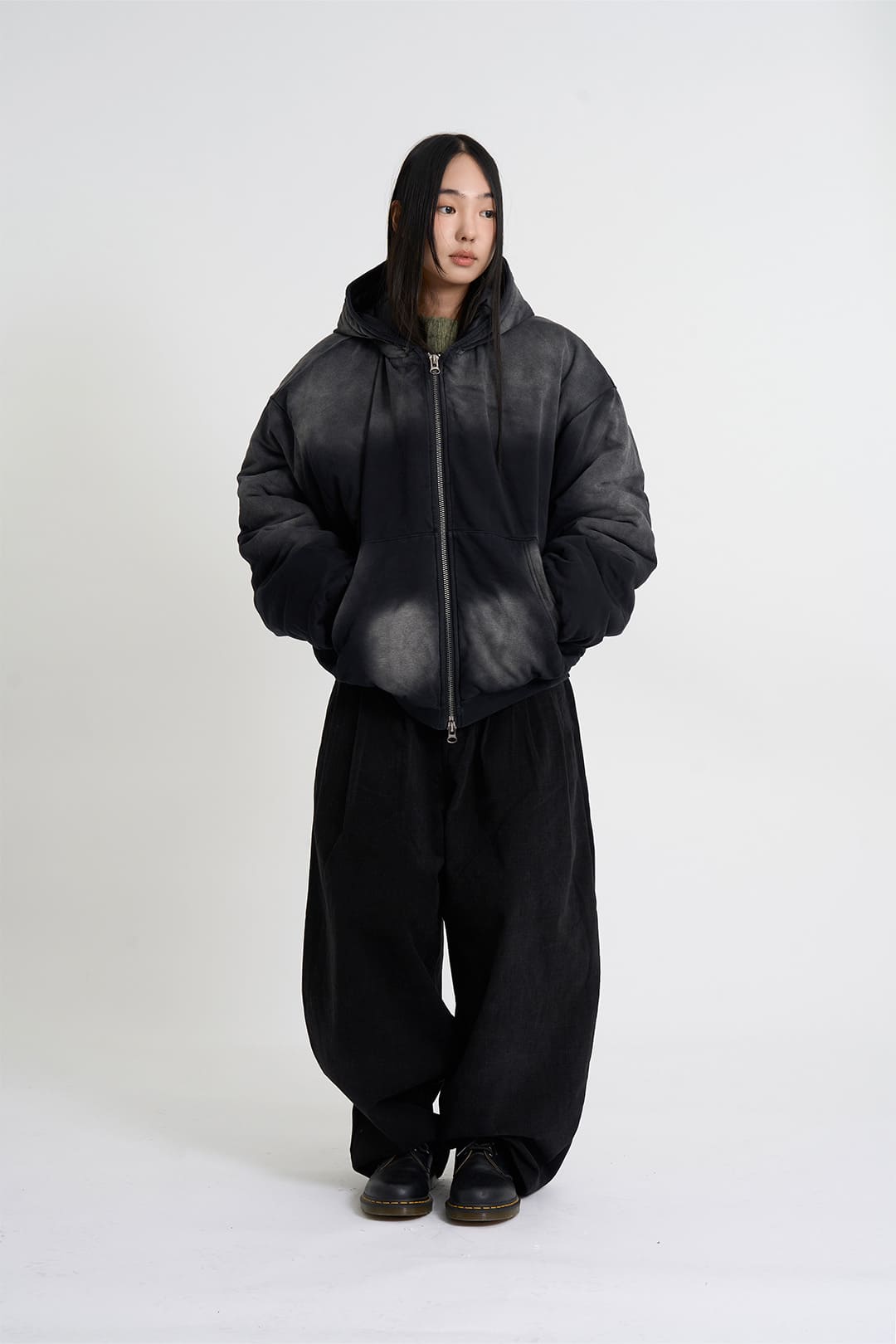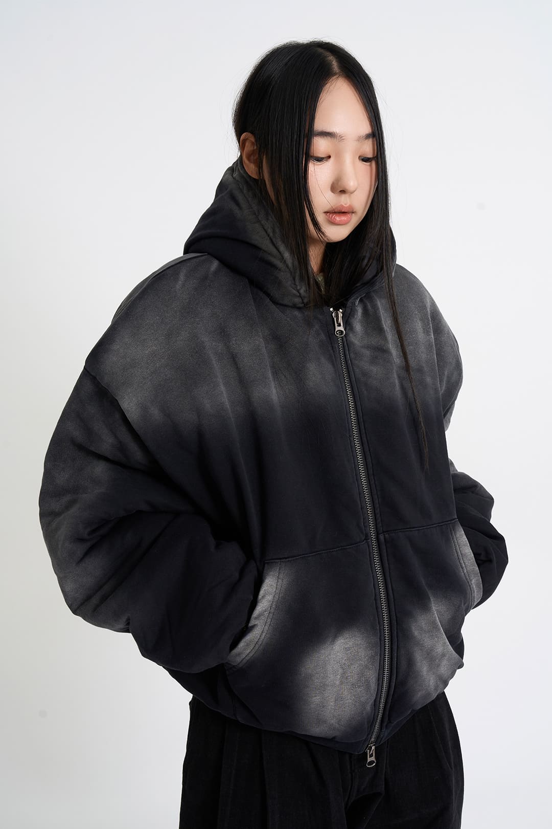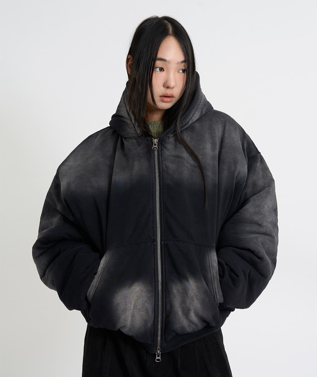 Quilted hood zip-up bomber