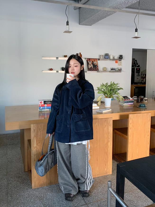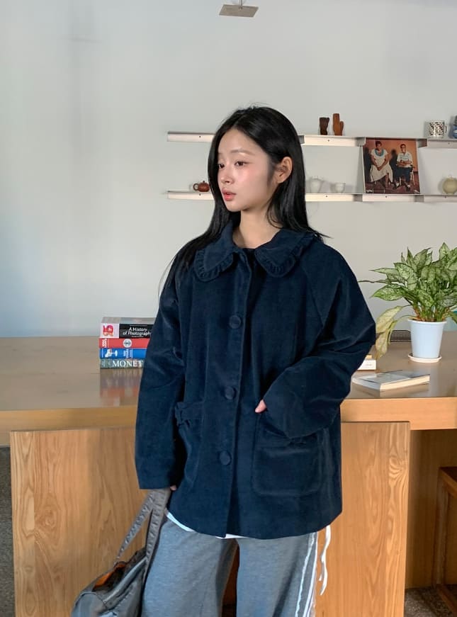 Rempa Corduroy Ribbon Collar Jacket