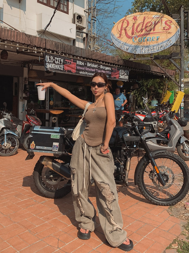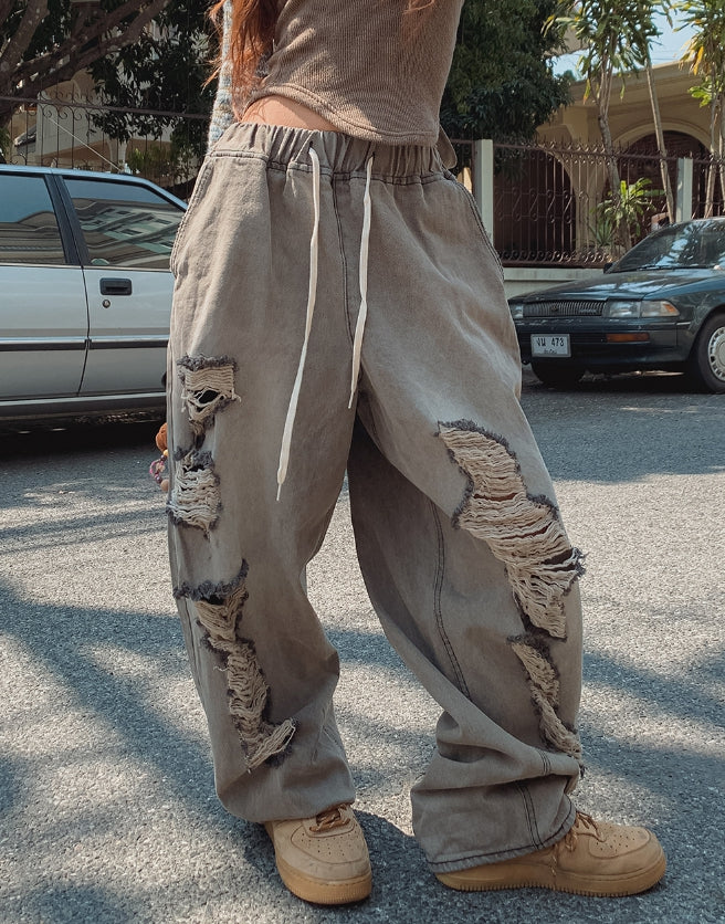 Salute Damage Balloon Denim Pants