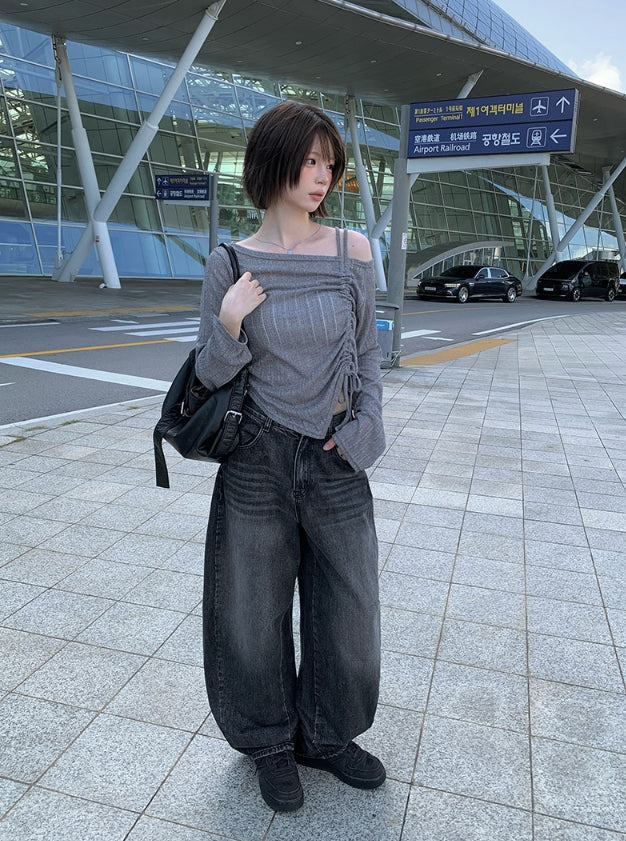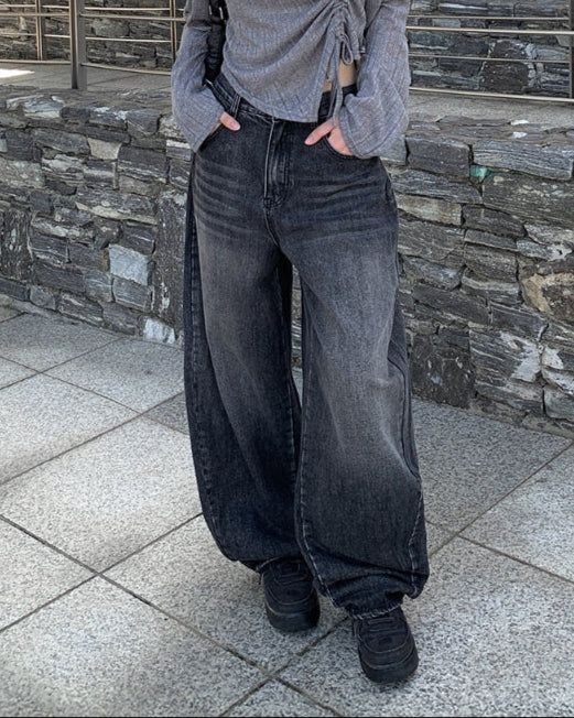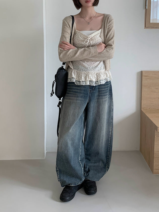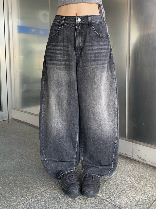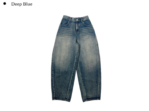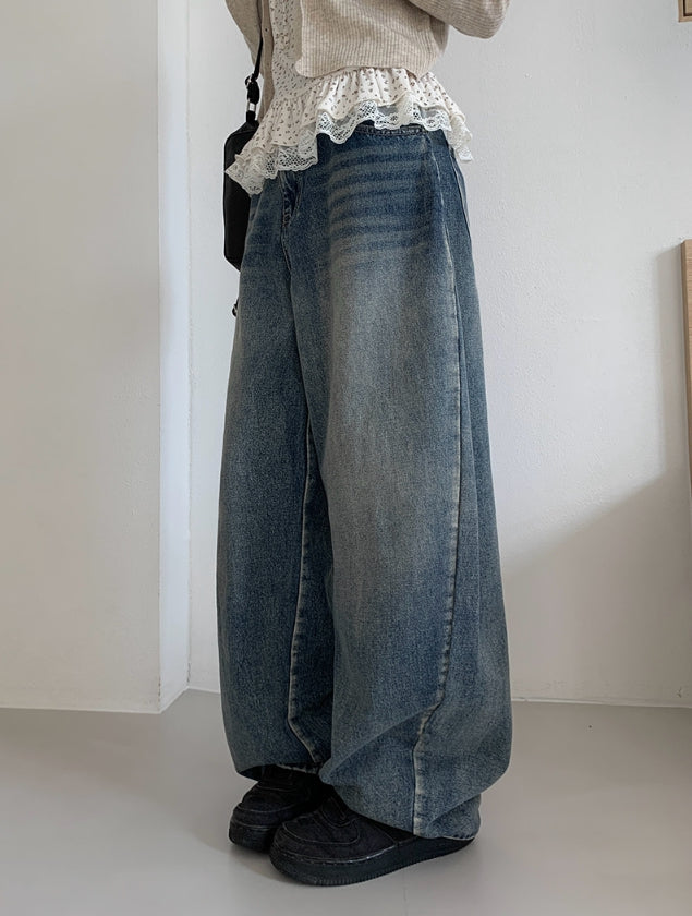 ソネビンテージウォッシュ加工ワイドデニムパンツ