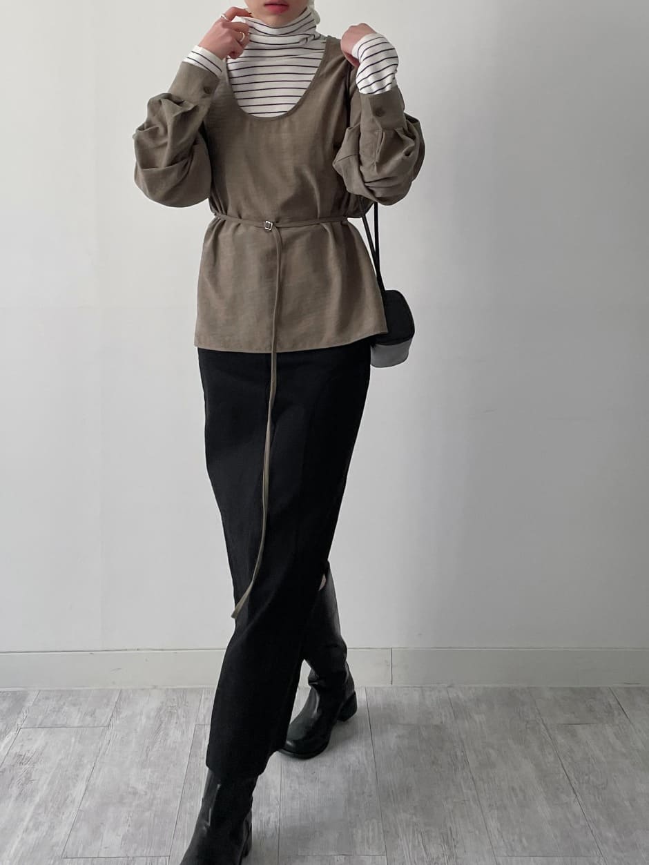 -169cm / 51kg / top 55(S) / bottom 27 / shoes 240mm / Black / Khaki Brown