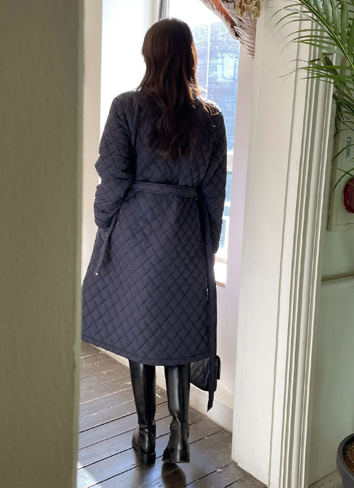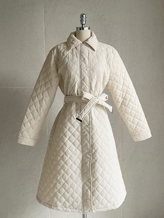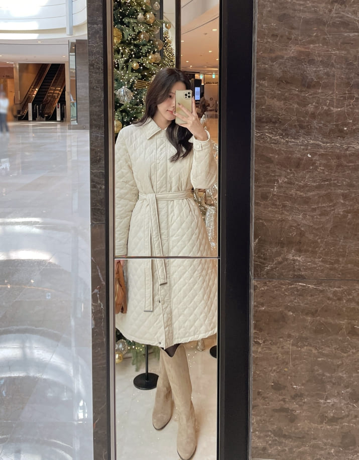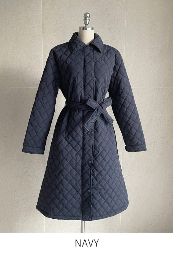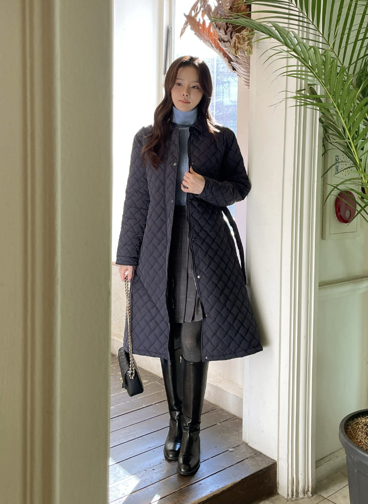 Suede Quilted Lightweight Long Padding Coat (Belt Set)
