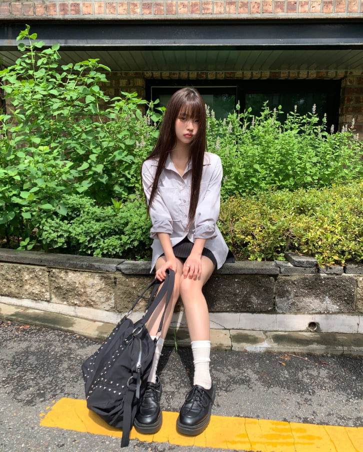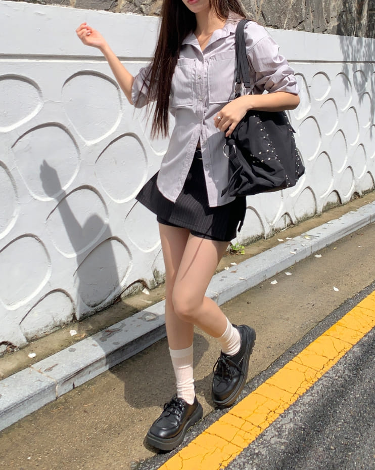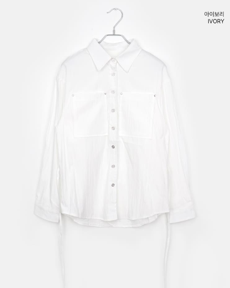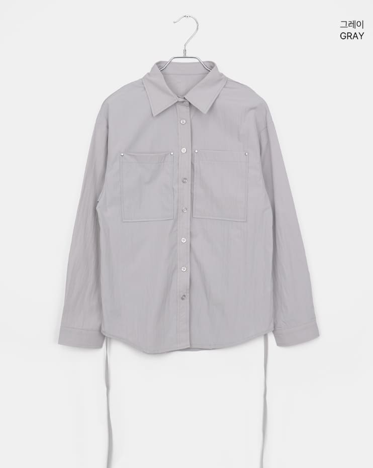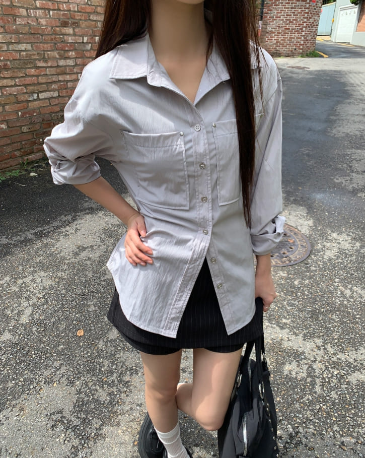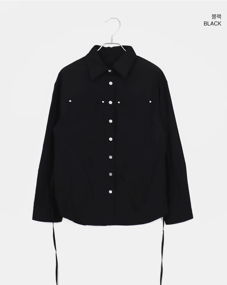 Suhi Rivet Pocket Strap Loose Fit Long Sleeve Shirt