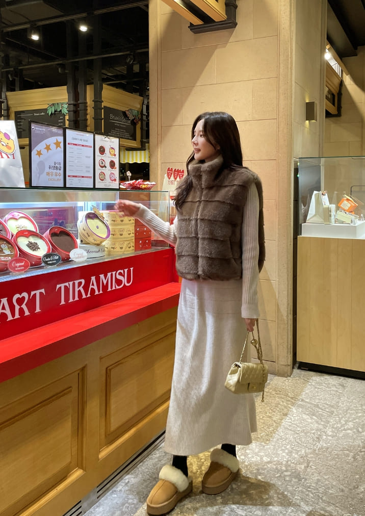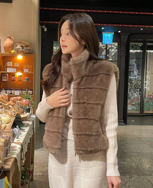Teco High Neck Eco Fur Mink Vest