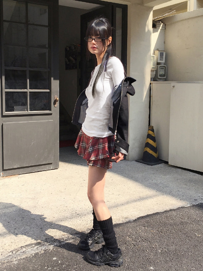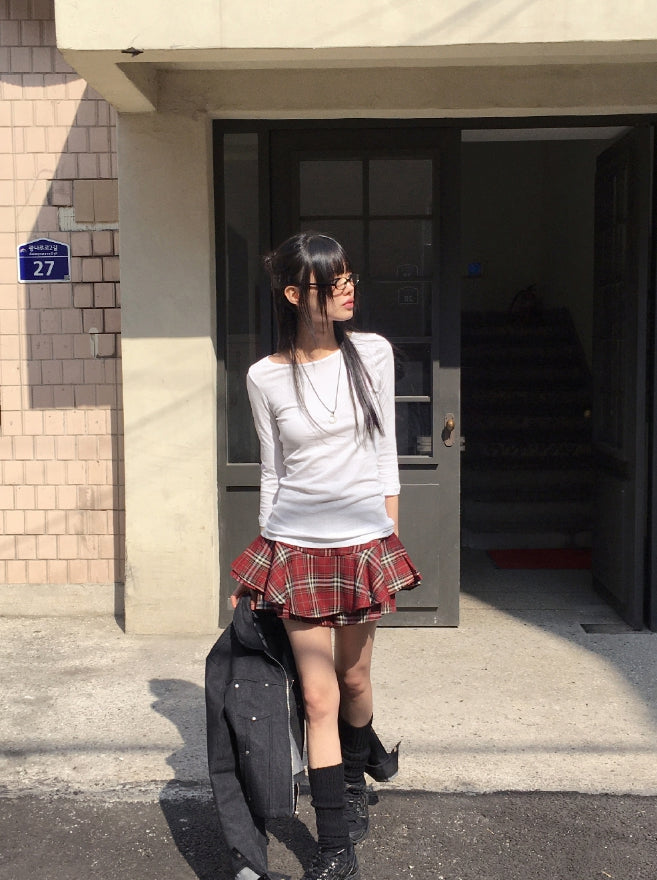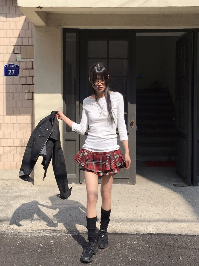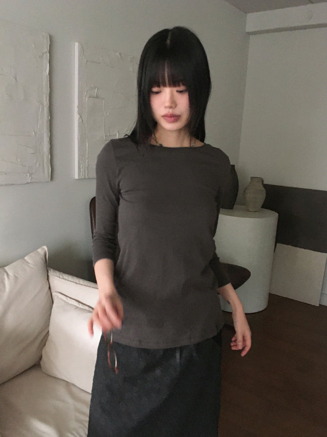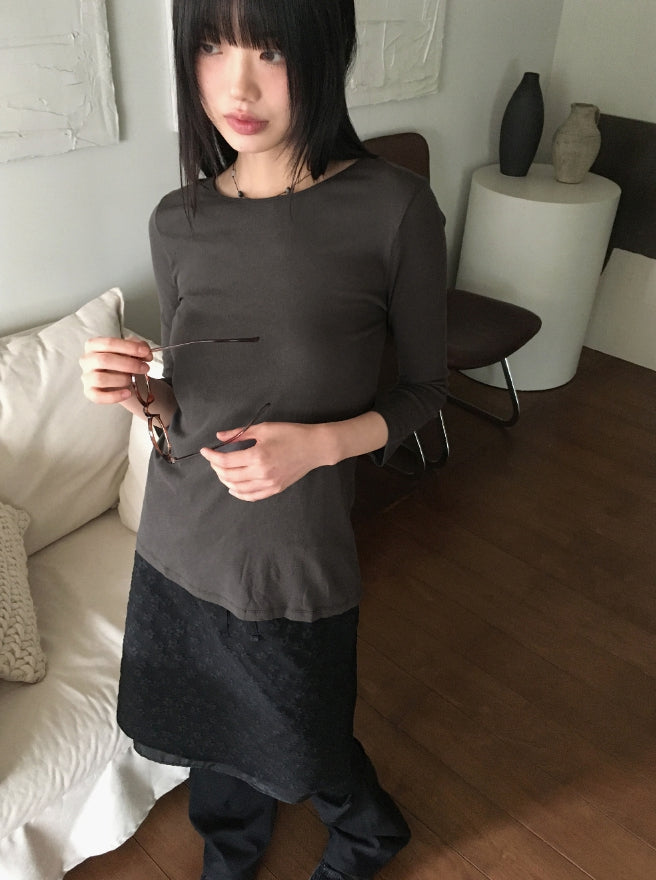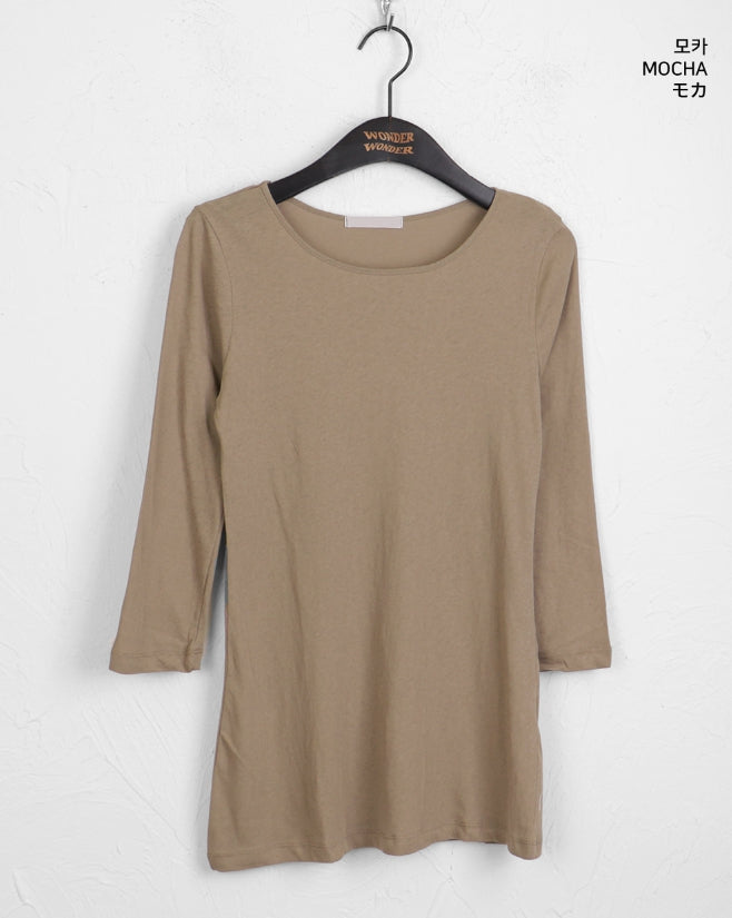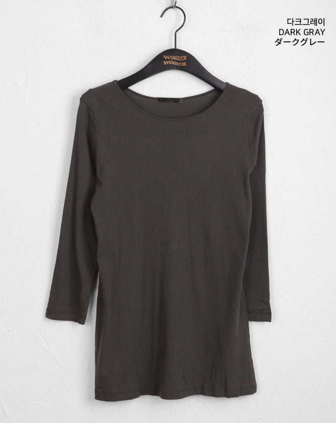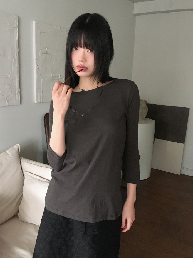 Todd Basic Plain Layered Cotton Round Three-quarter Short Sleeve T-Shirt
