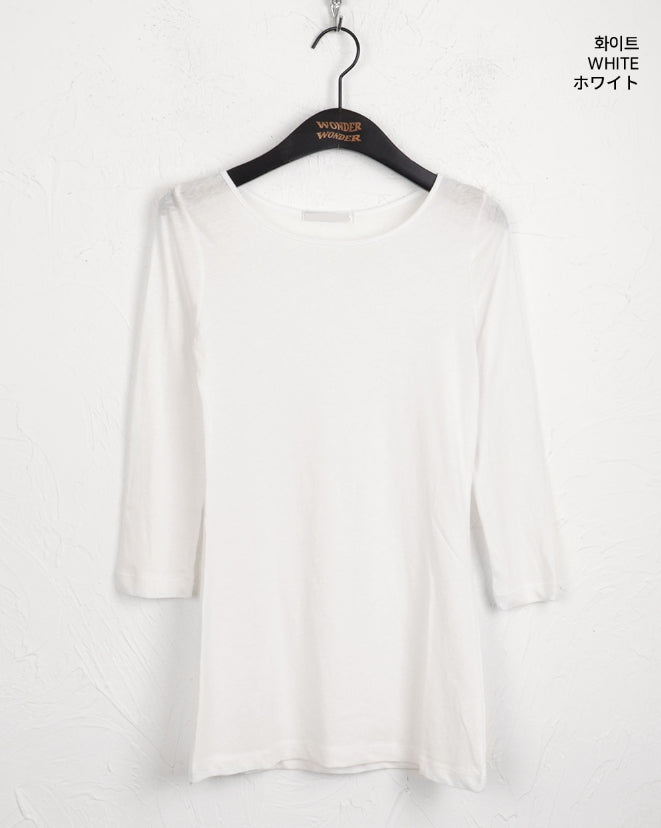 トッドベーシックプレーンレイヤードコットンラウンド7分丈半袖Tシャツ