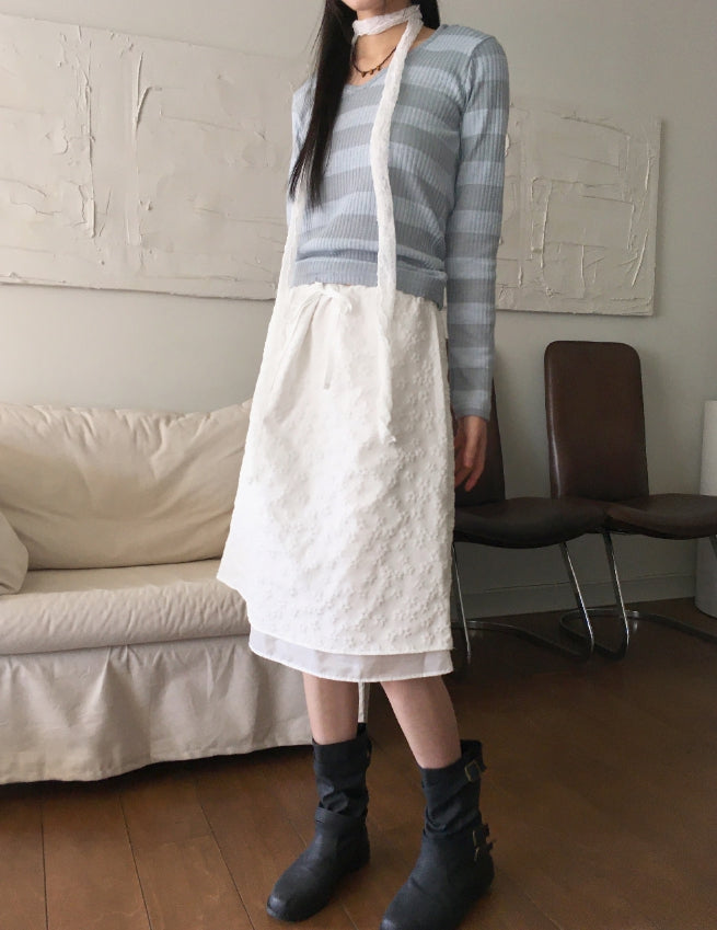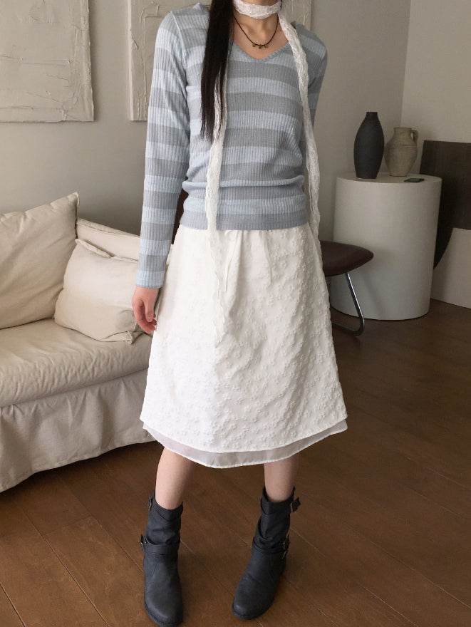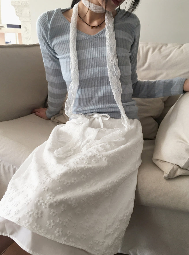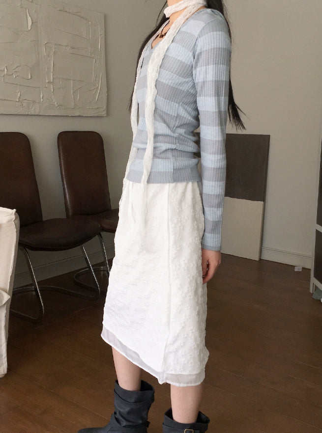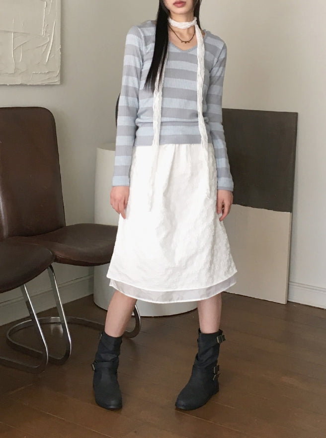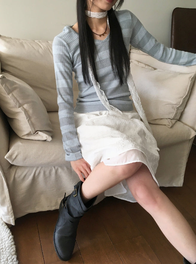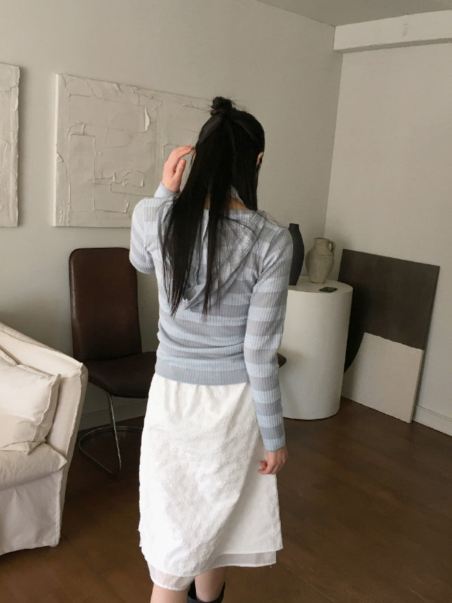 Tutu Stripe U Neck Slim Hood Long Sleeve T-Shirt