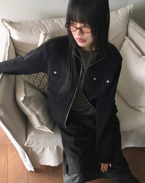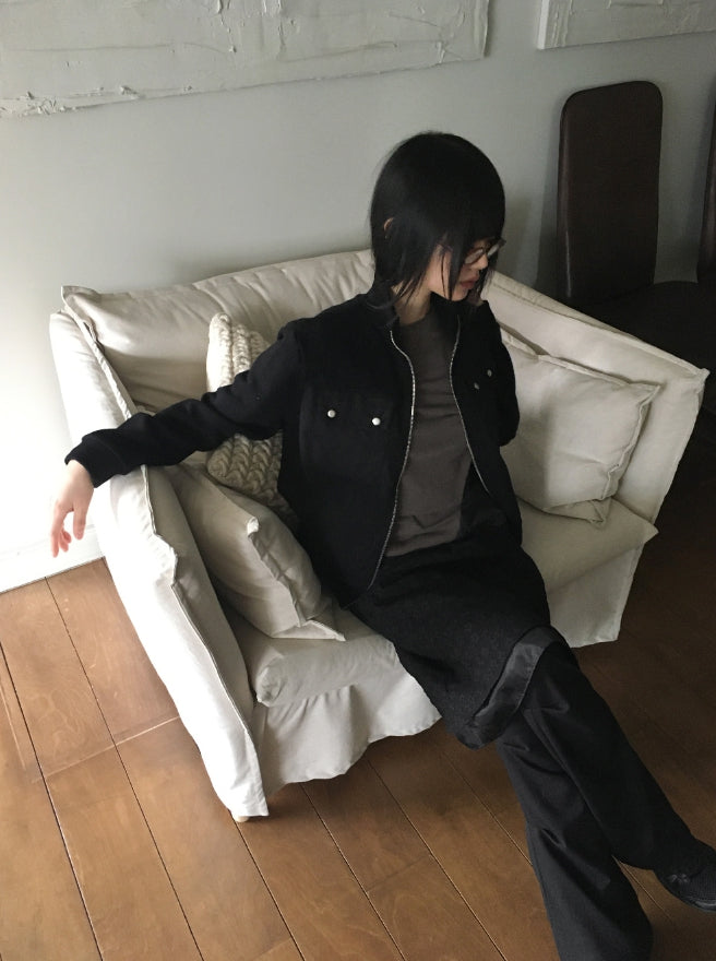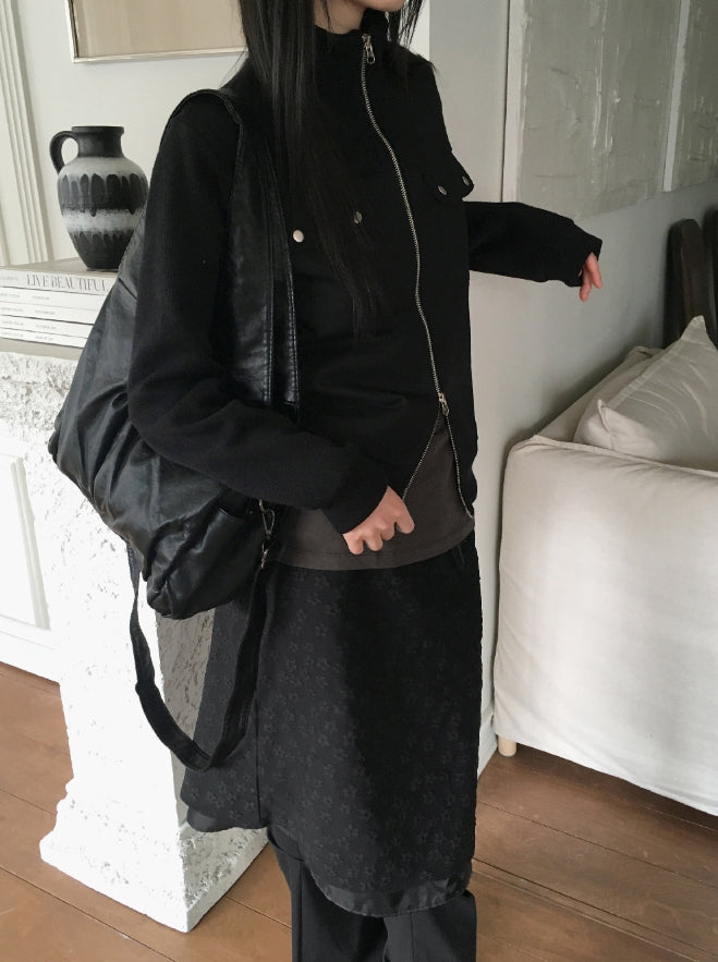 Vet Pocket Coloring Two-Way High-Neck Knit Long-Sleeved Zip-Up