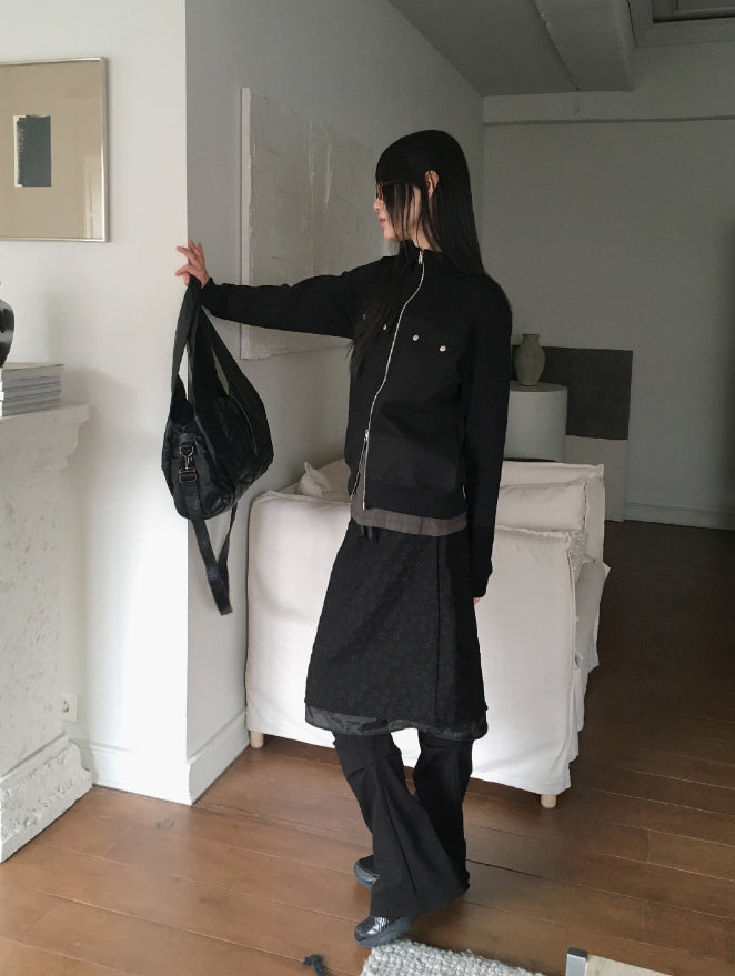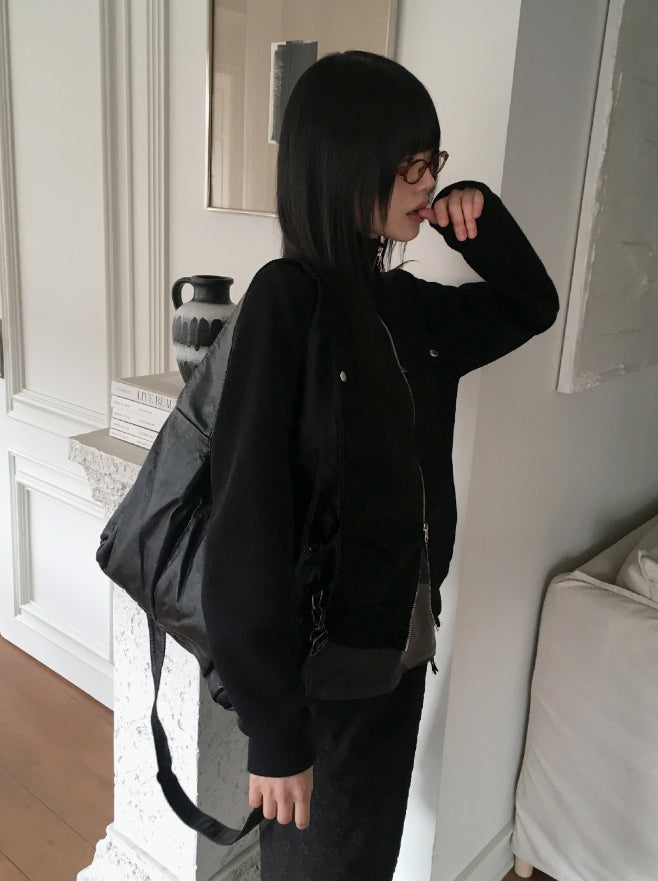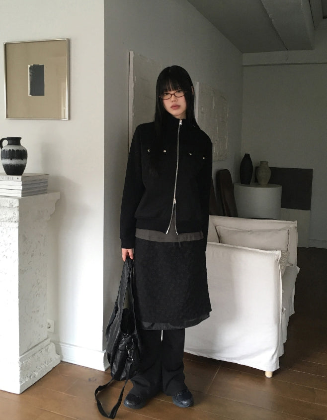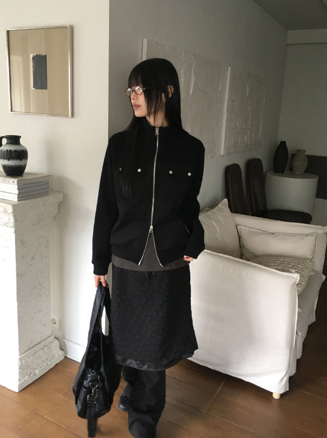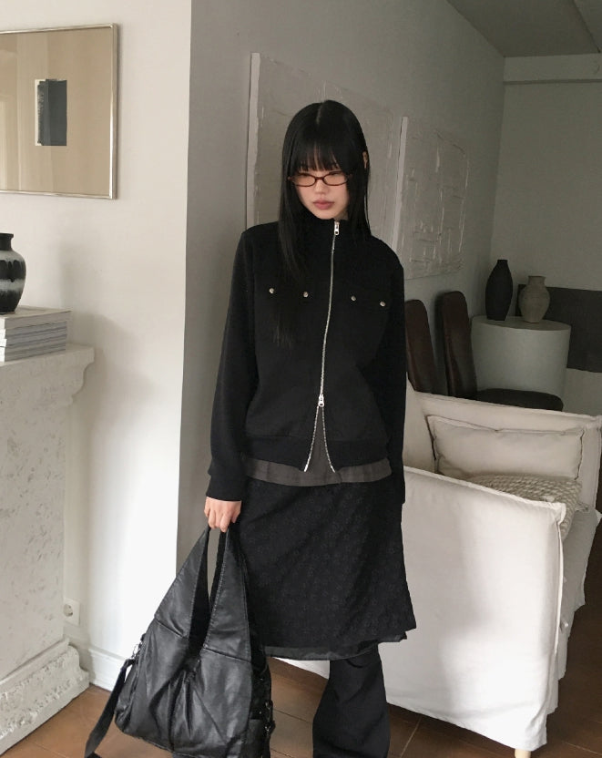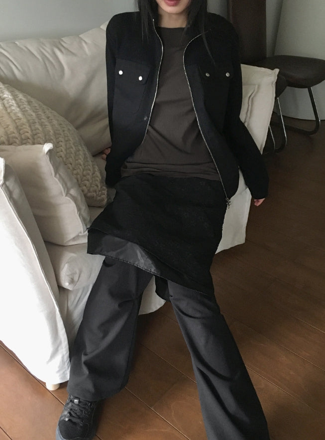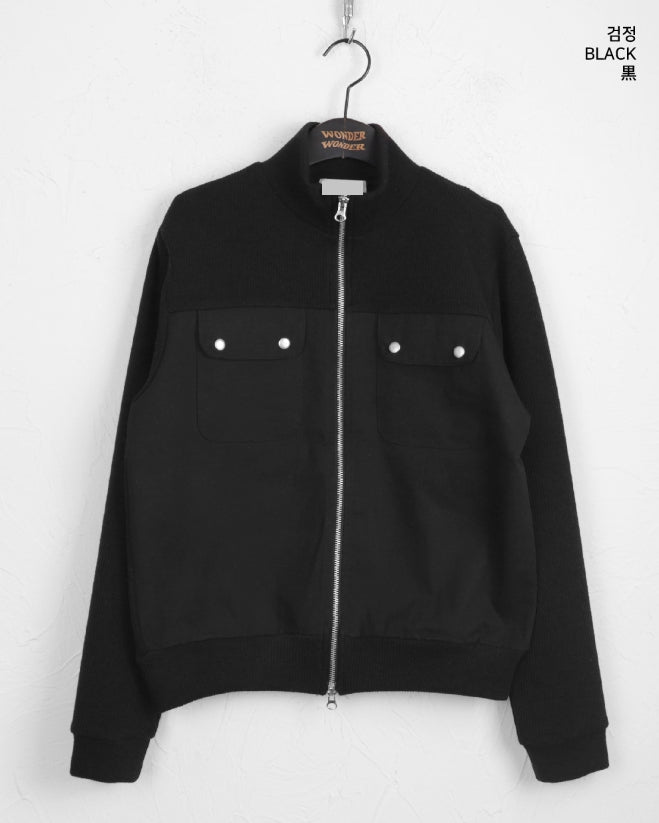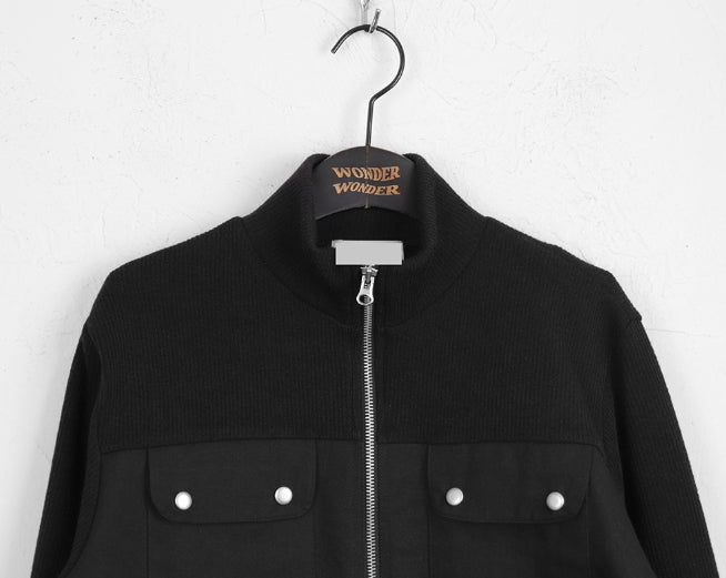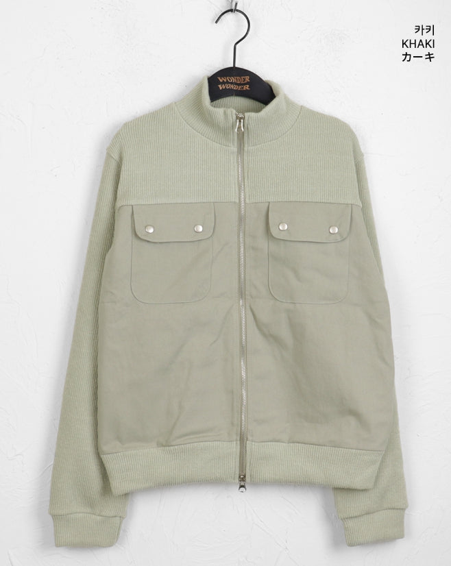 Vet Pocket Color Matching Two-Way Knit Long Sleeve Zip-Up