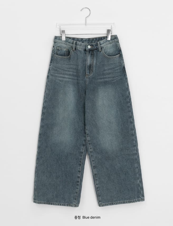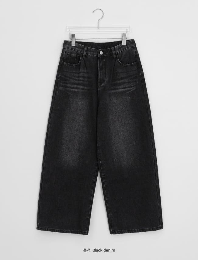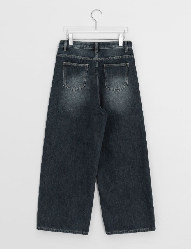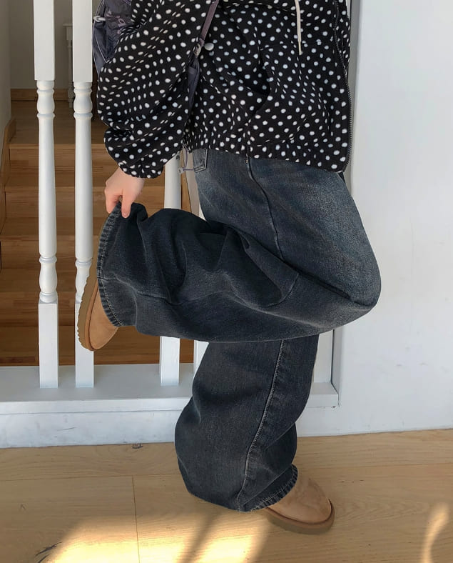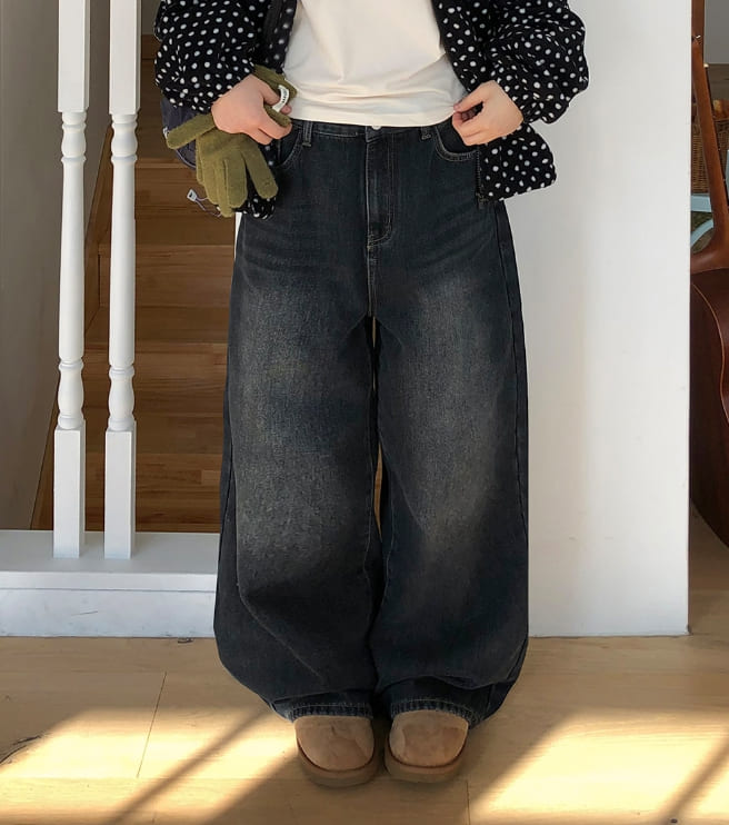 ヤンビウォッシュ加工デニムワイド裏起毛パンツ