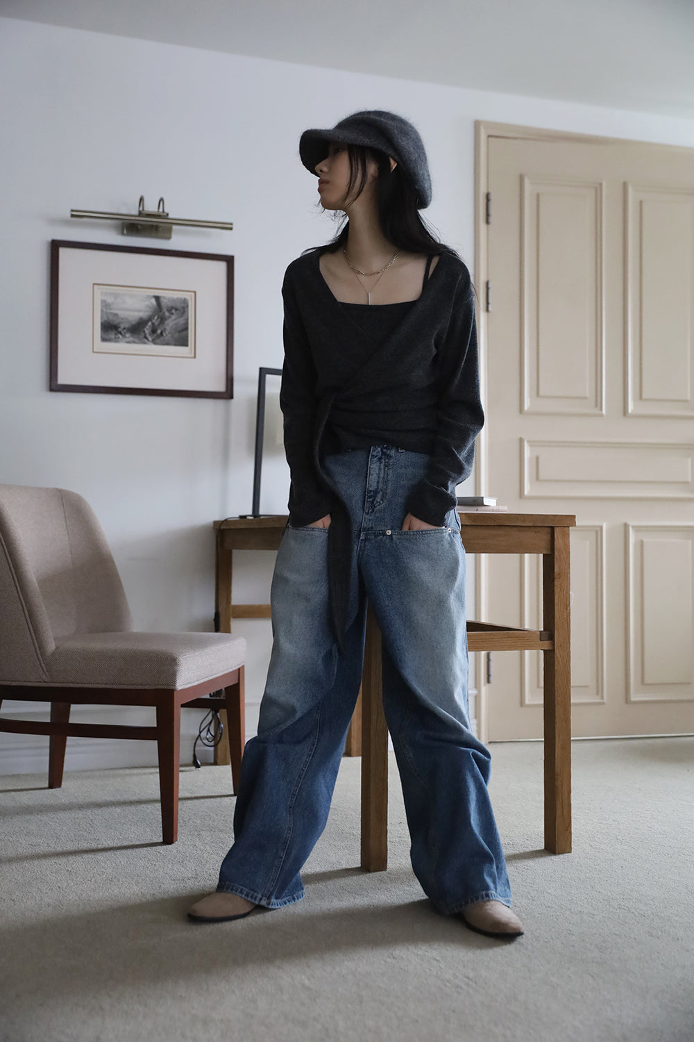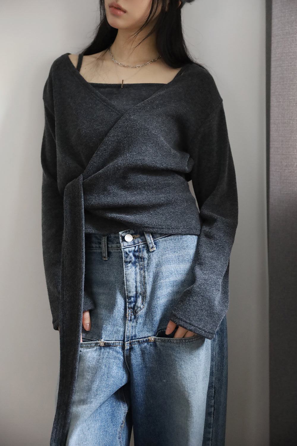 −Wrap Knit (着丈53 肩幅40.5 胸囲88 袖丈55)