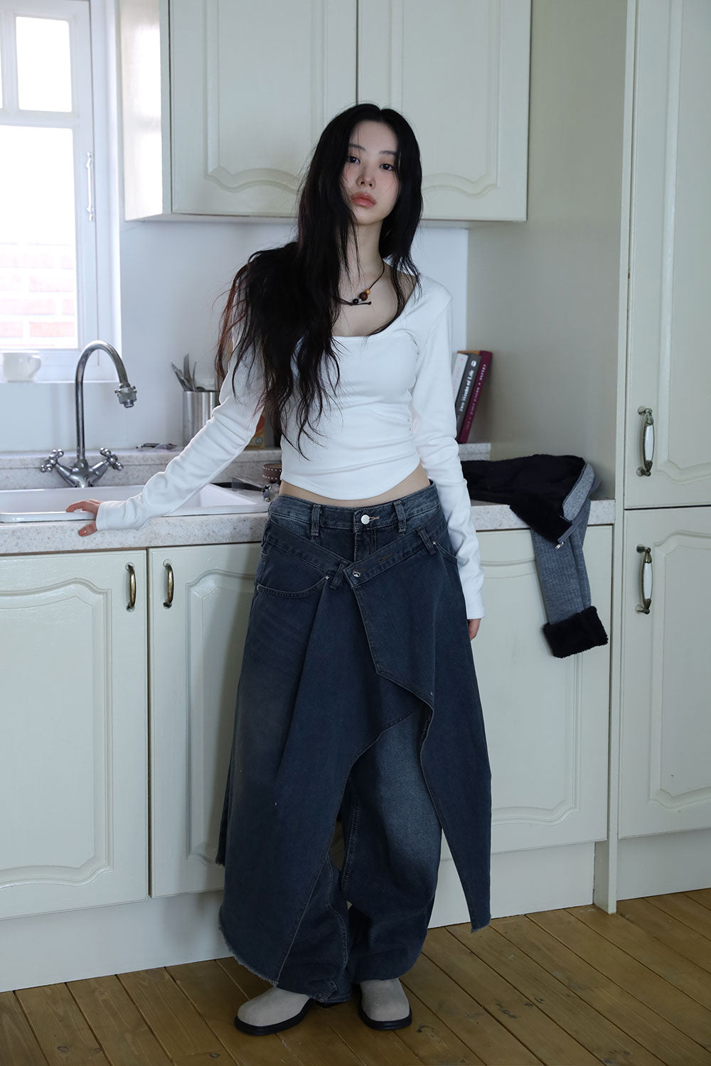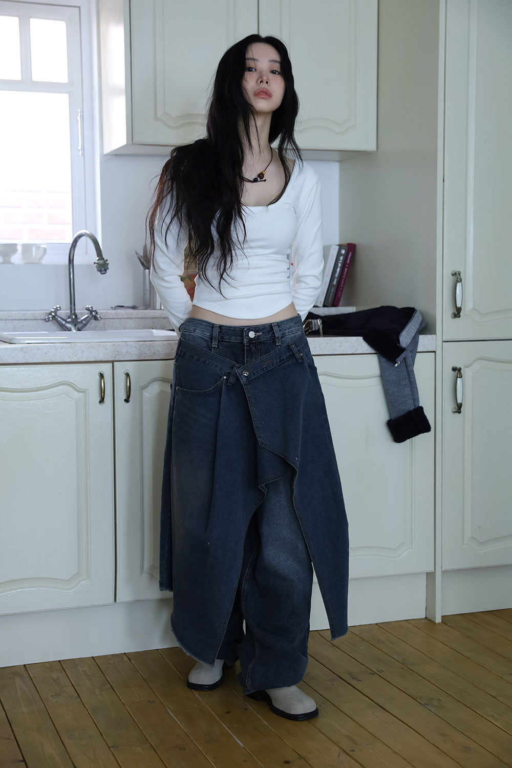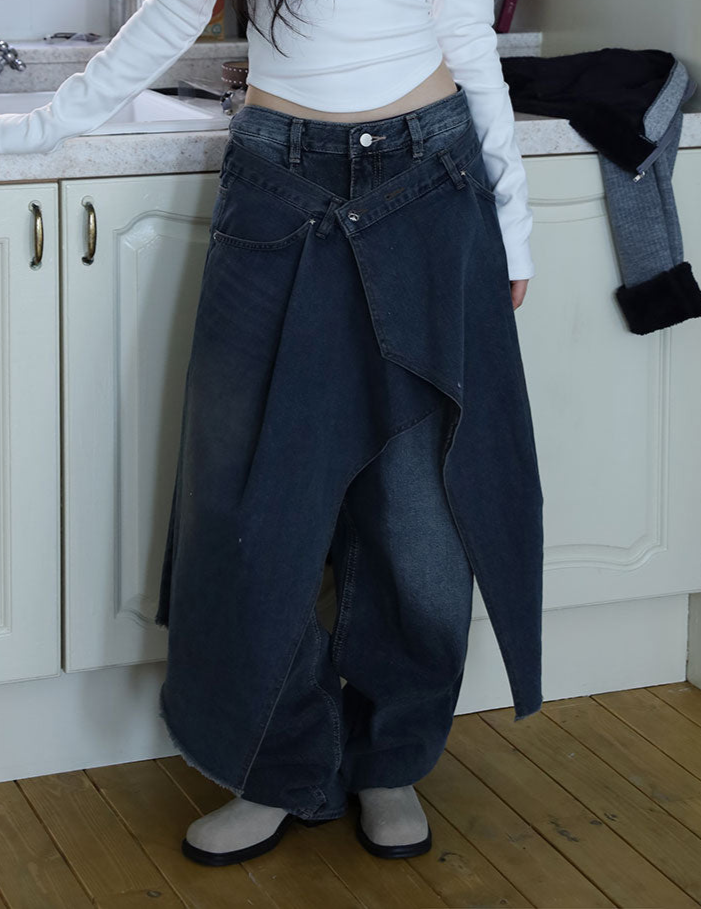 Antique Wrapping Denim Skirt