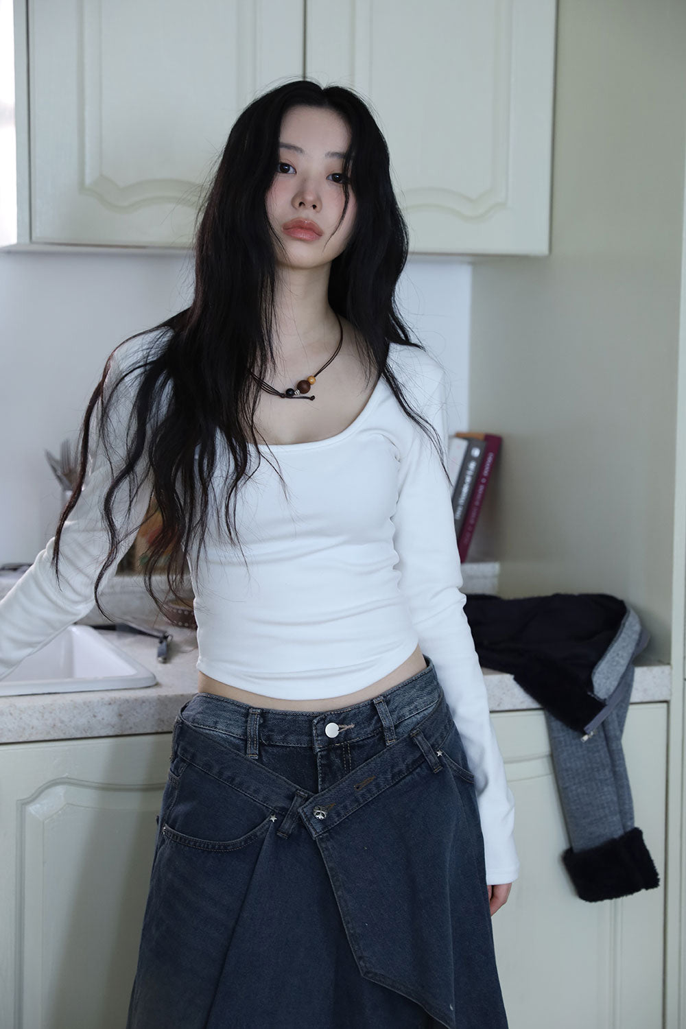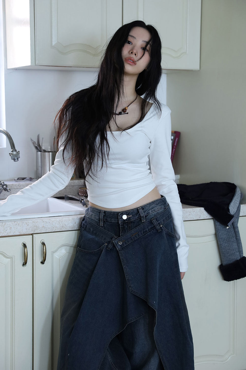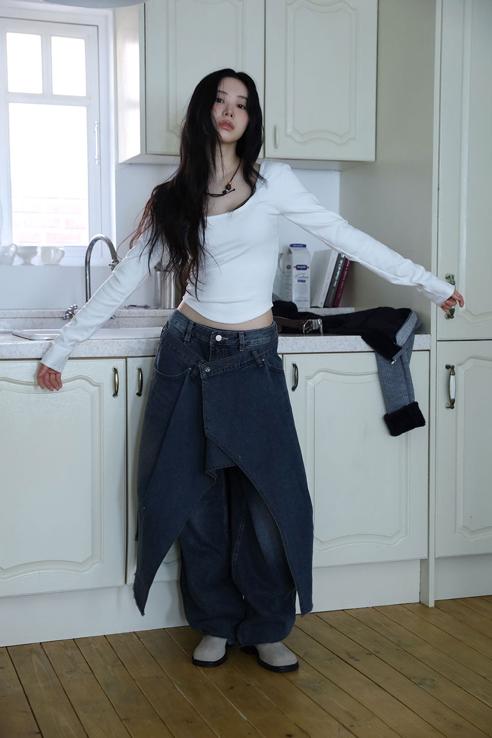 Antique Wrapping Denim Skirt