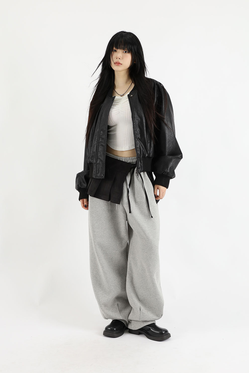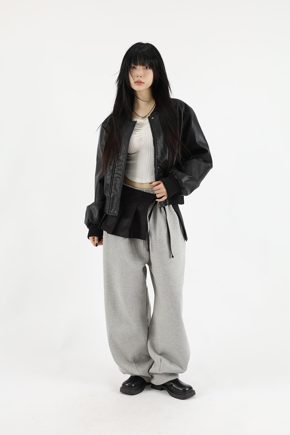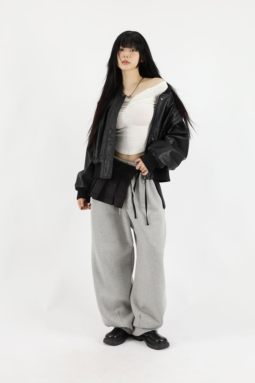 -ONE SIZE / 裏起毛 (ウエスト(ゴム)66-104 ヒップ114 股上36 股下67 もも周り66 裾周り42 総丈103)