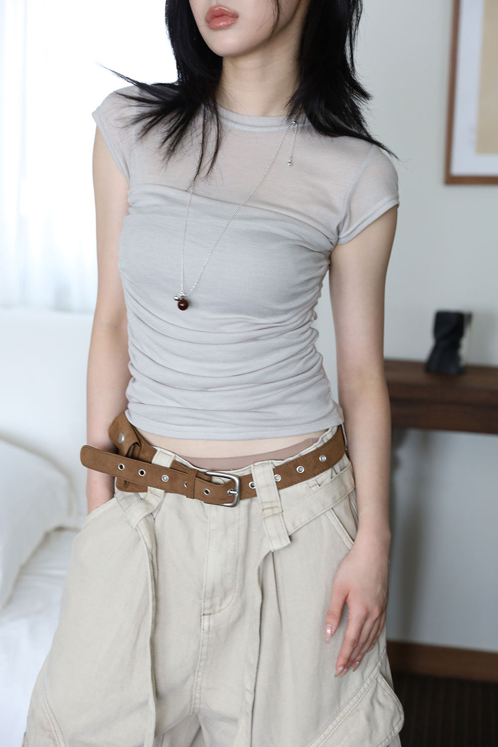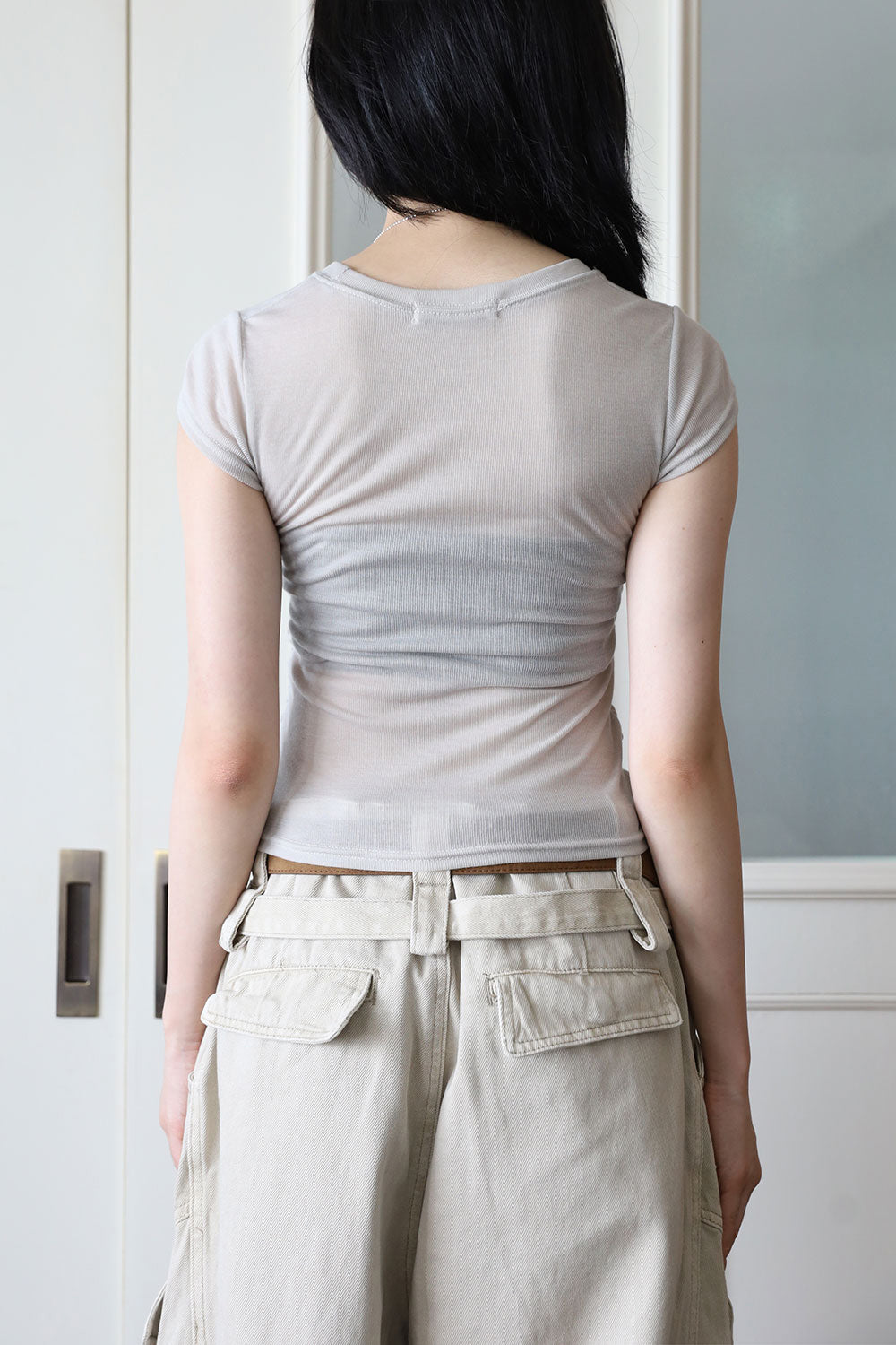 Ballet shirring cap sleeve tee