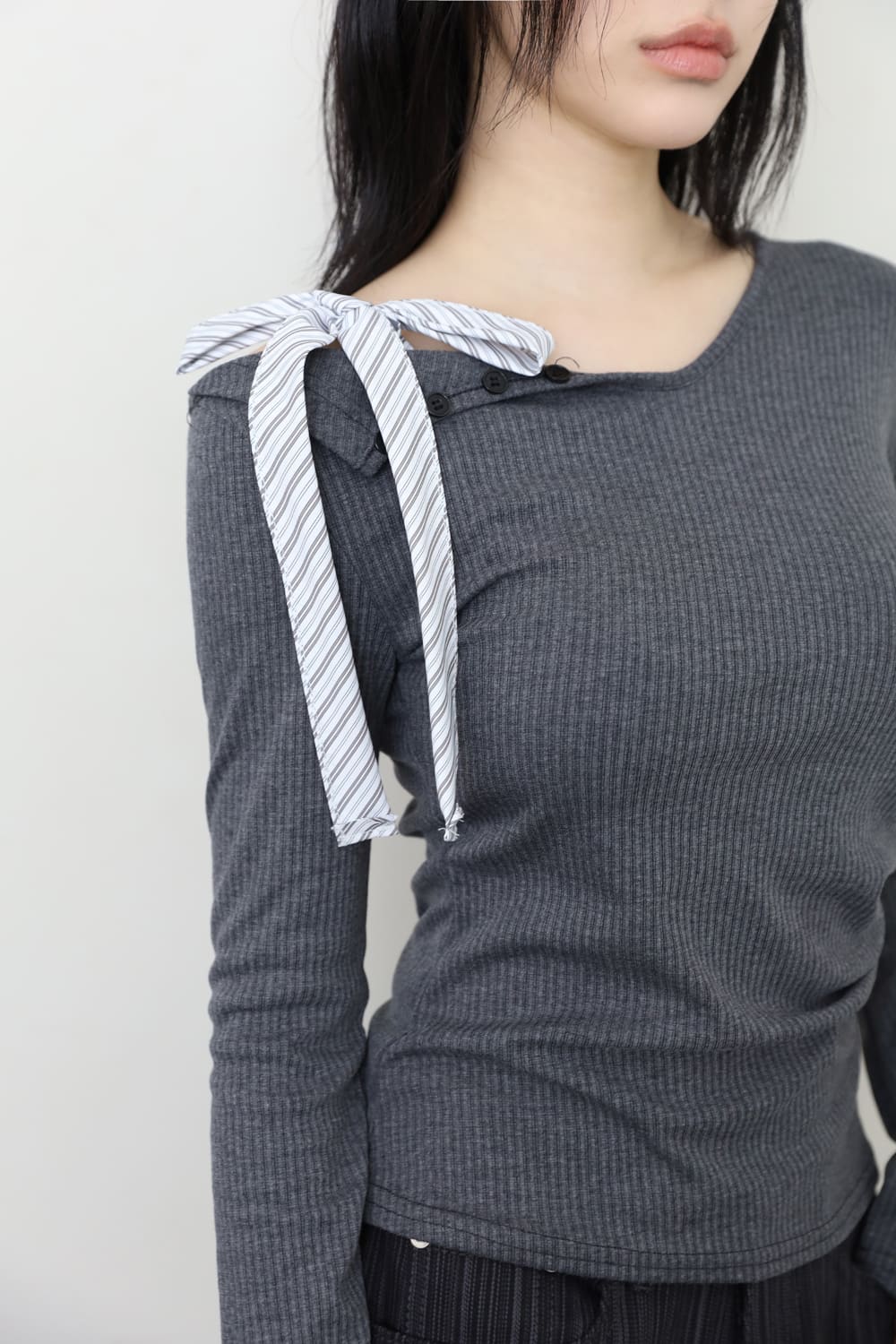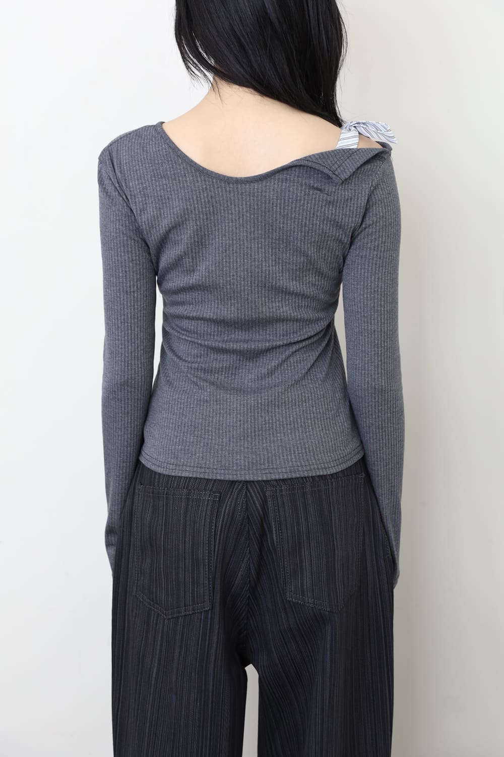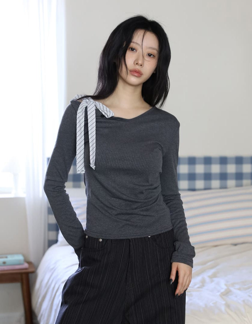 ベベストライプタイリブドTシャツ