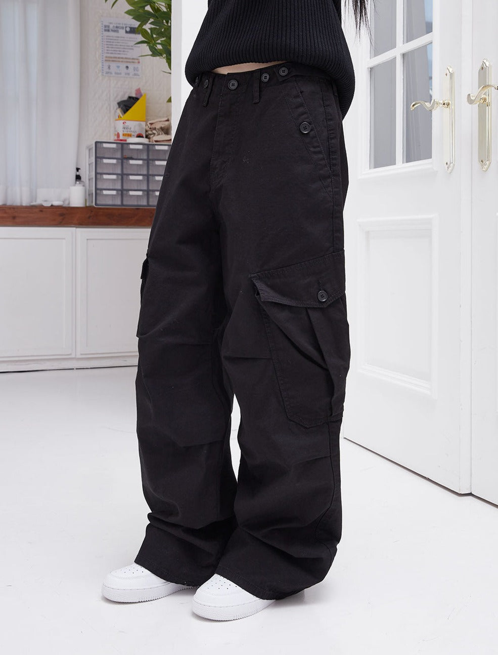 −M (ウエスト68 ヒップ117 股上30.5 股下78 もも周り69 裾周り51 総丈108.5)