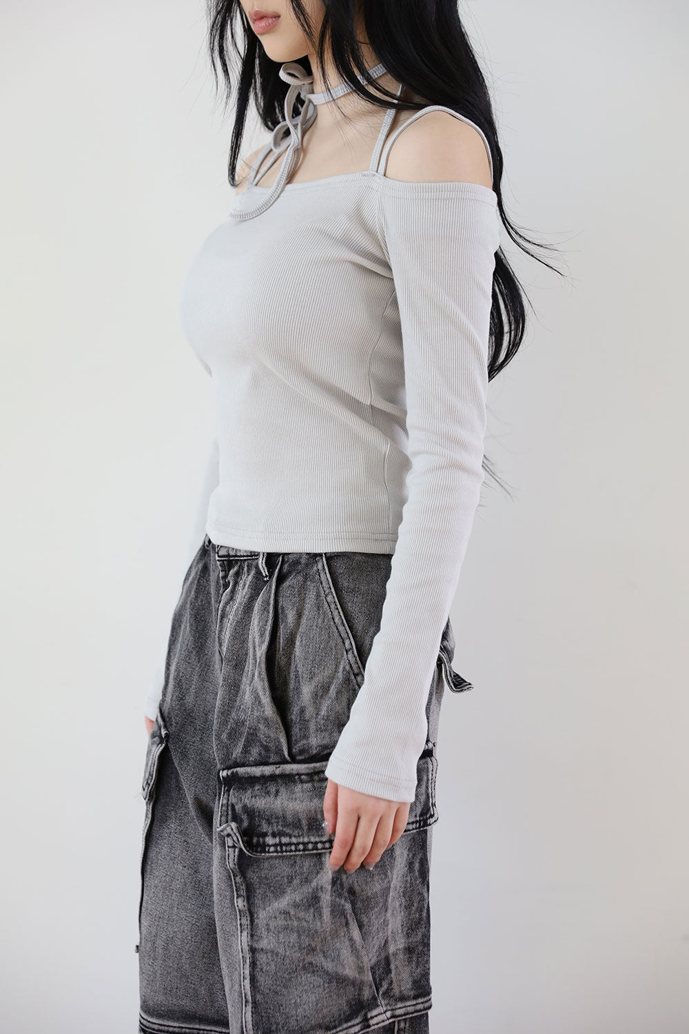 ベルストラップショルダーTシャツ