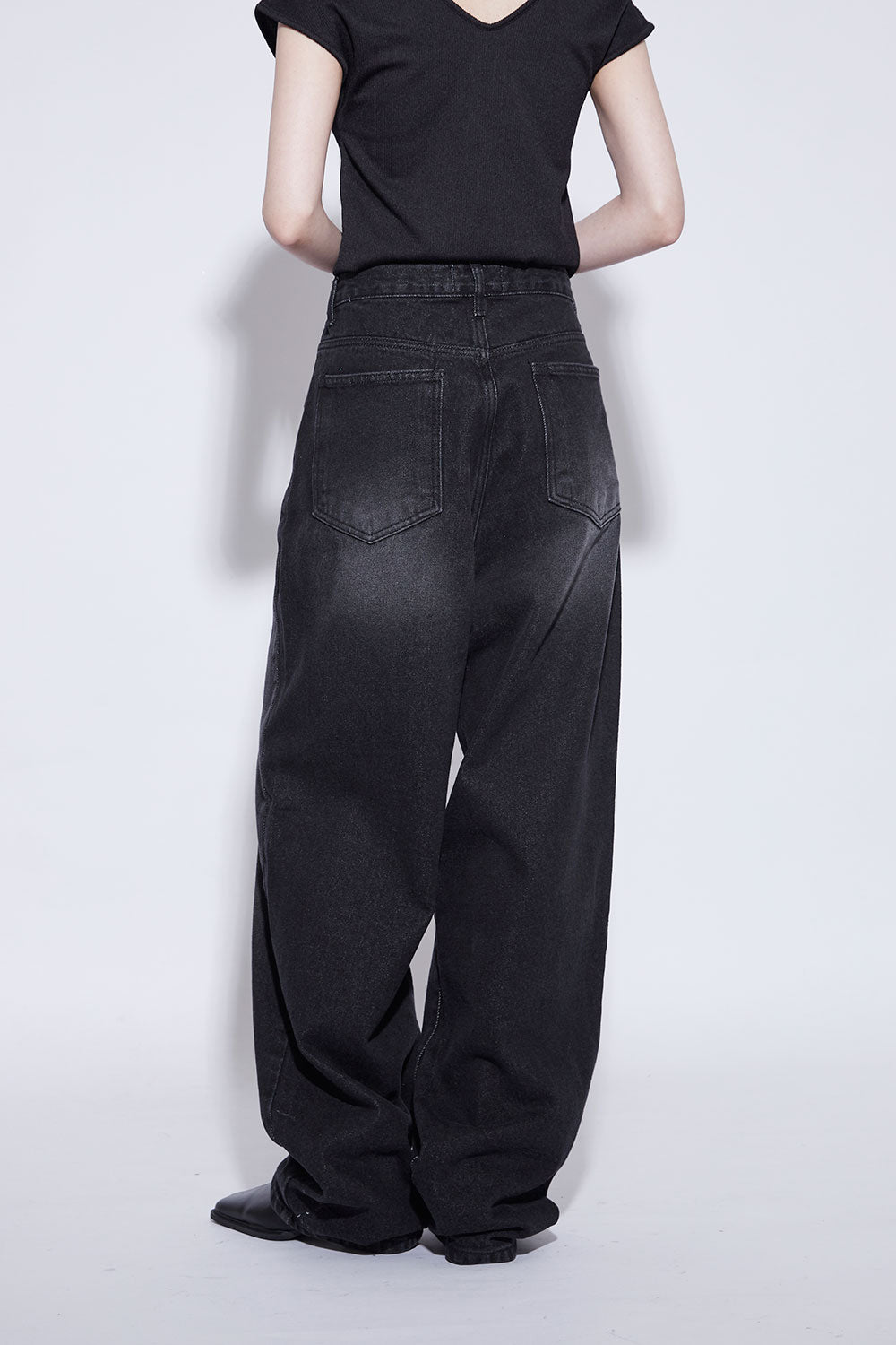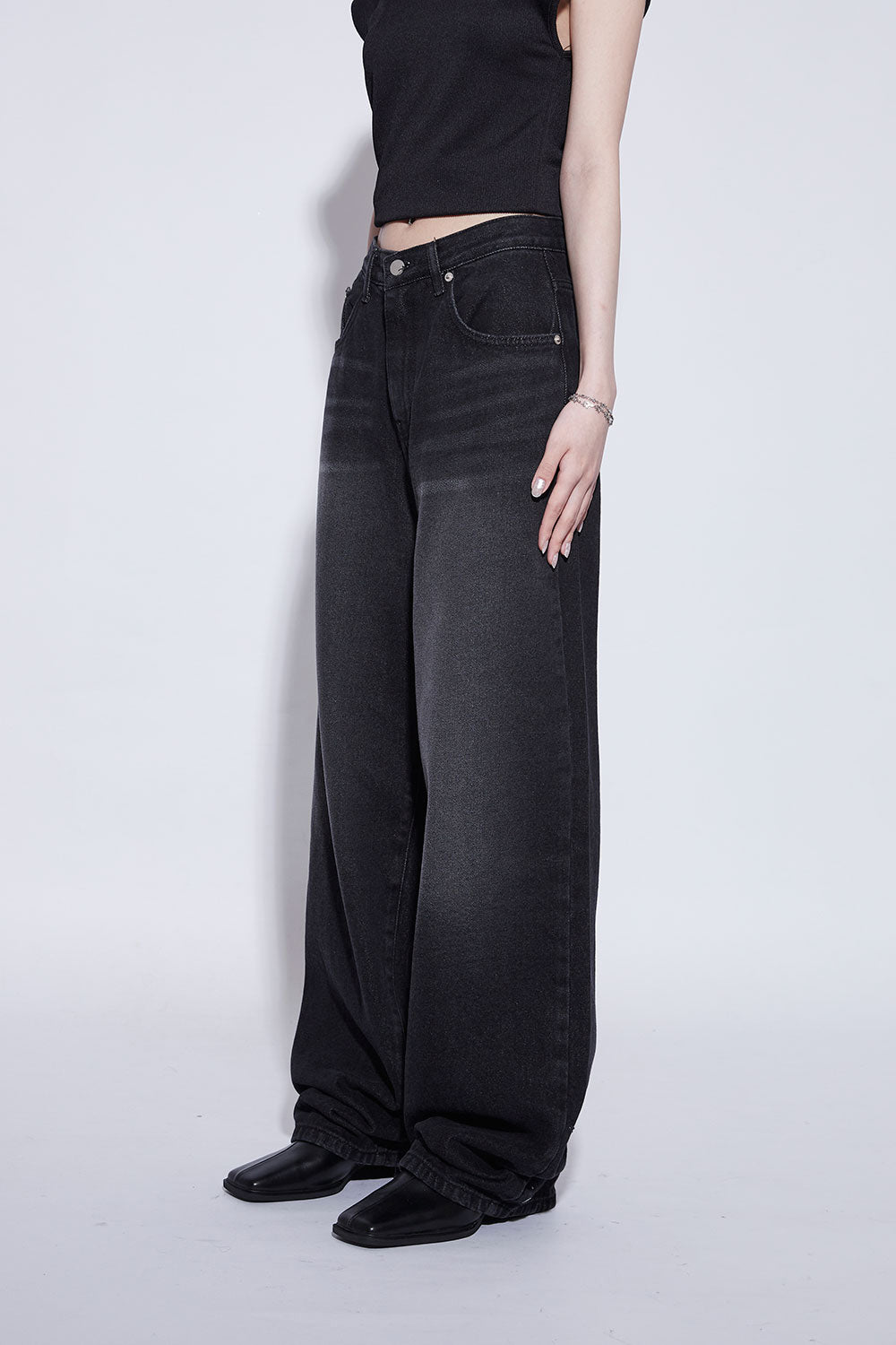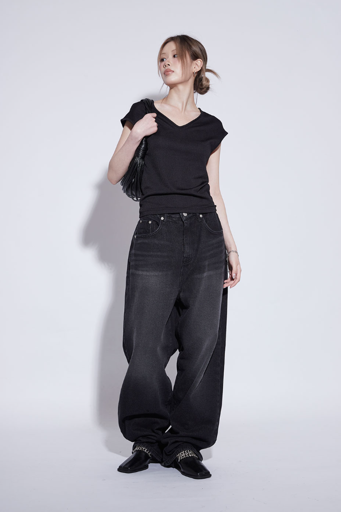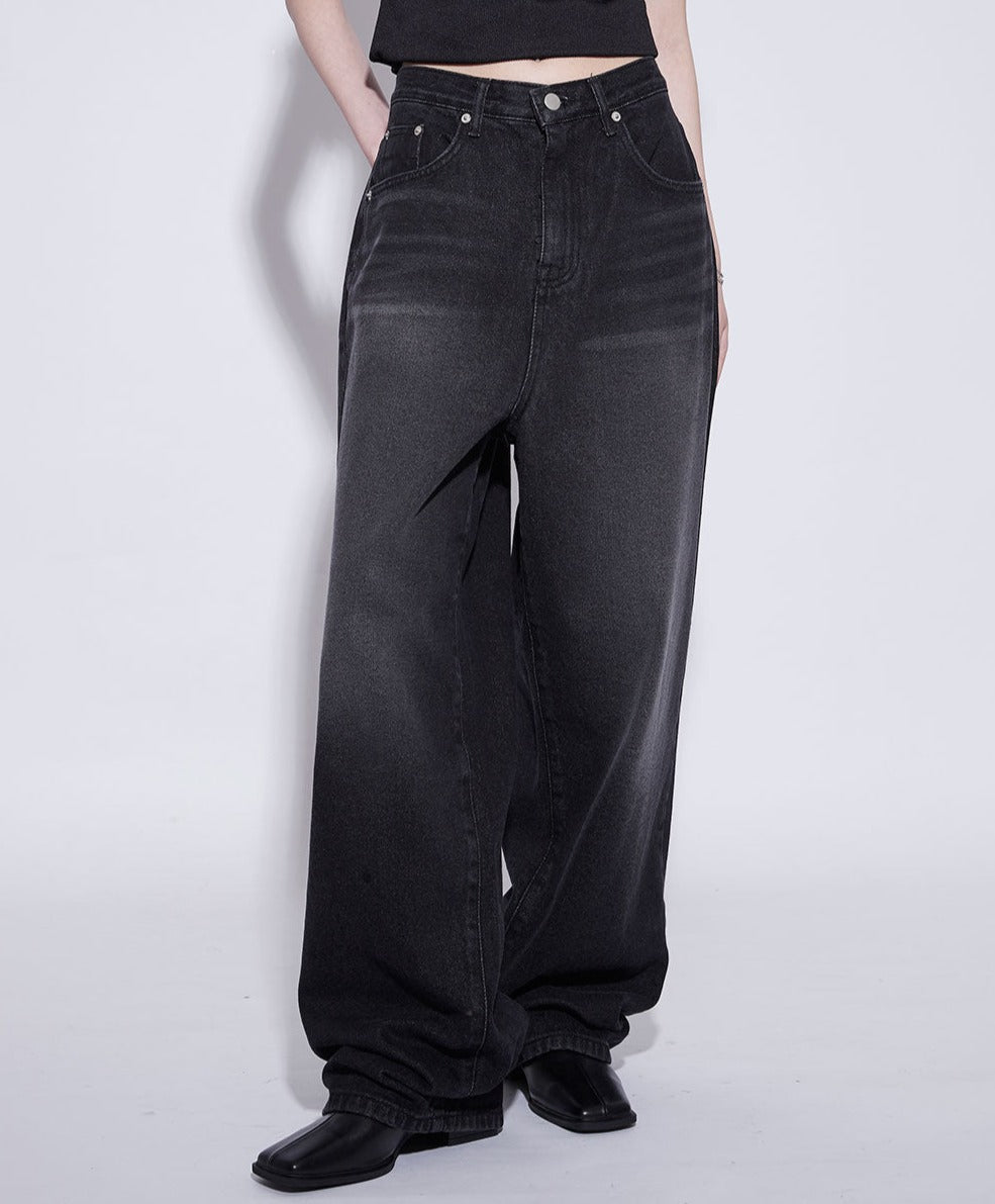 black washing wide jeans