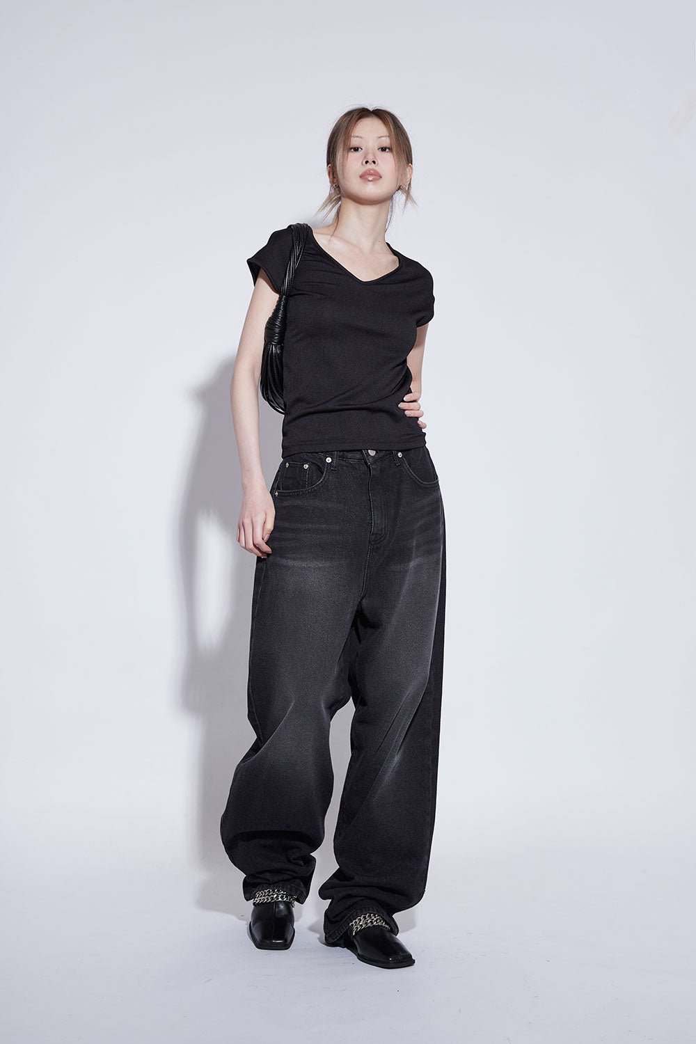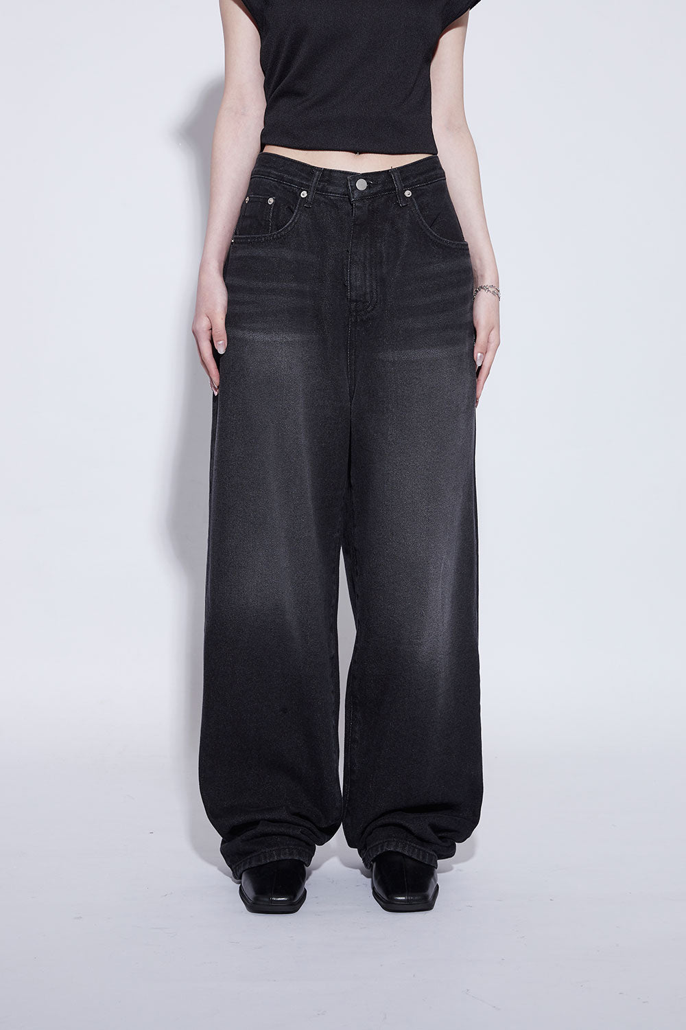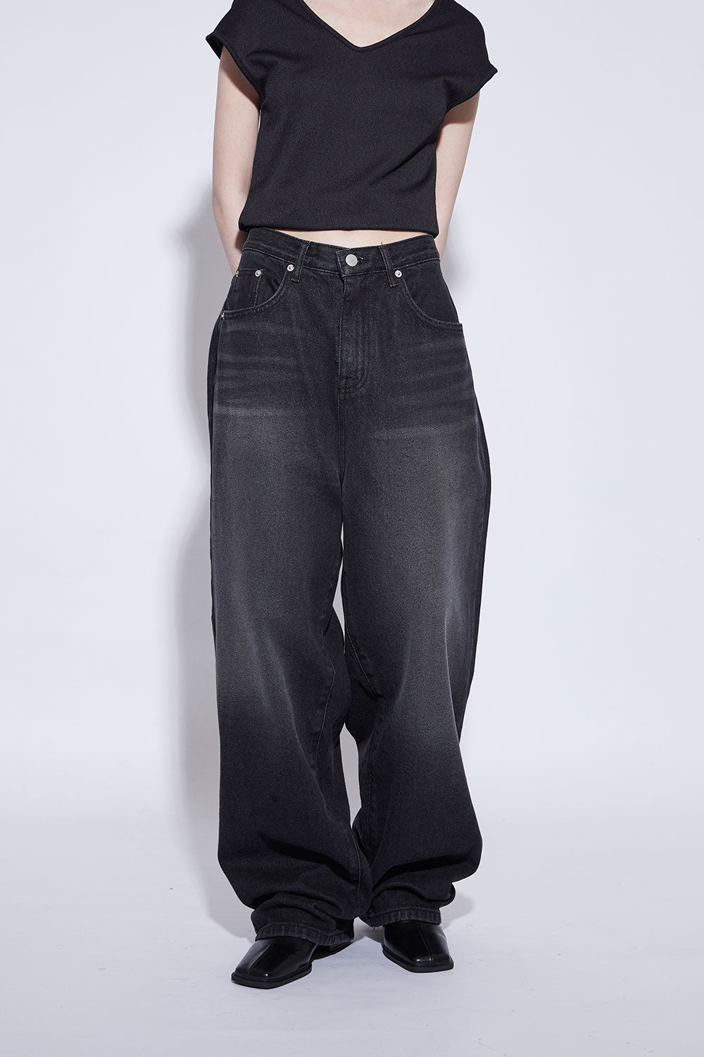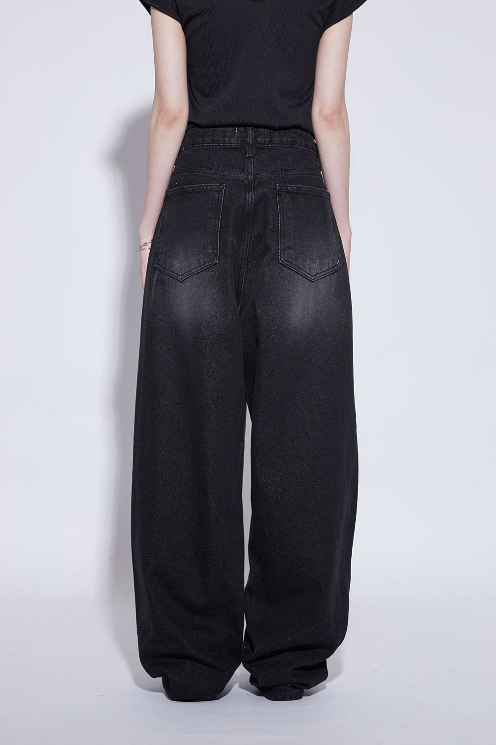 black washing wide jeans