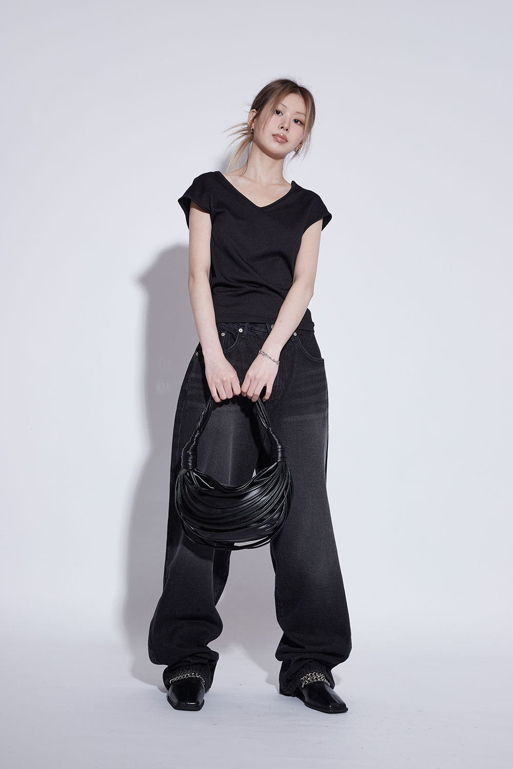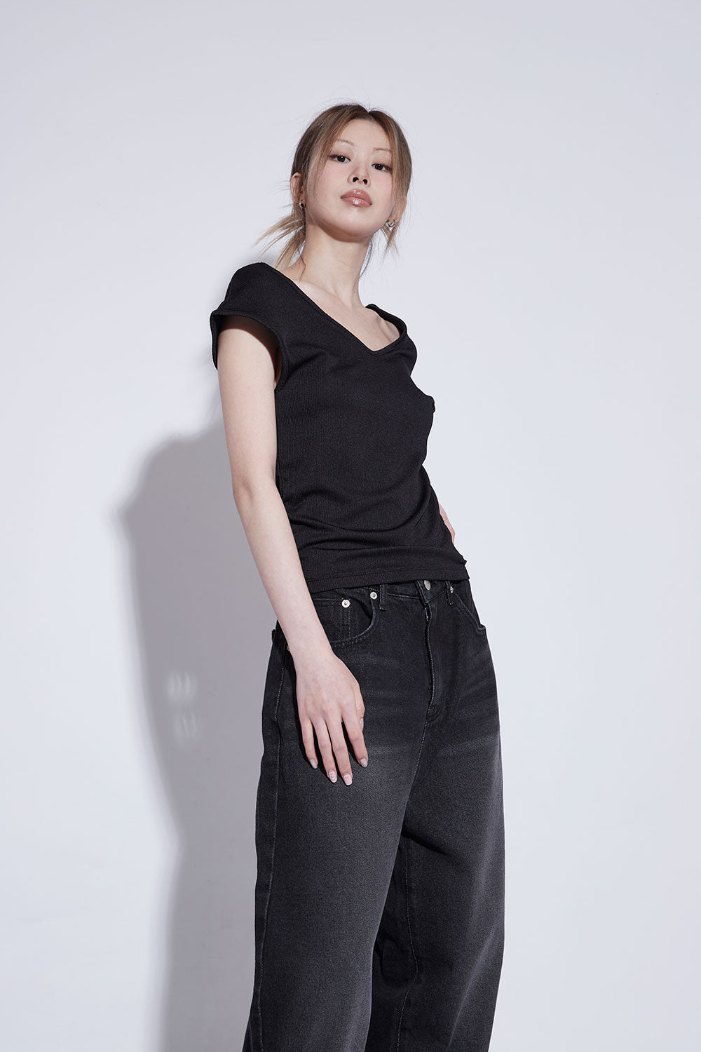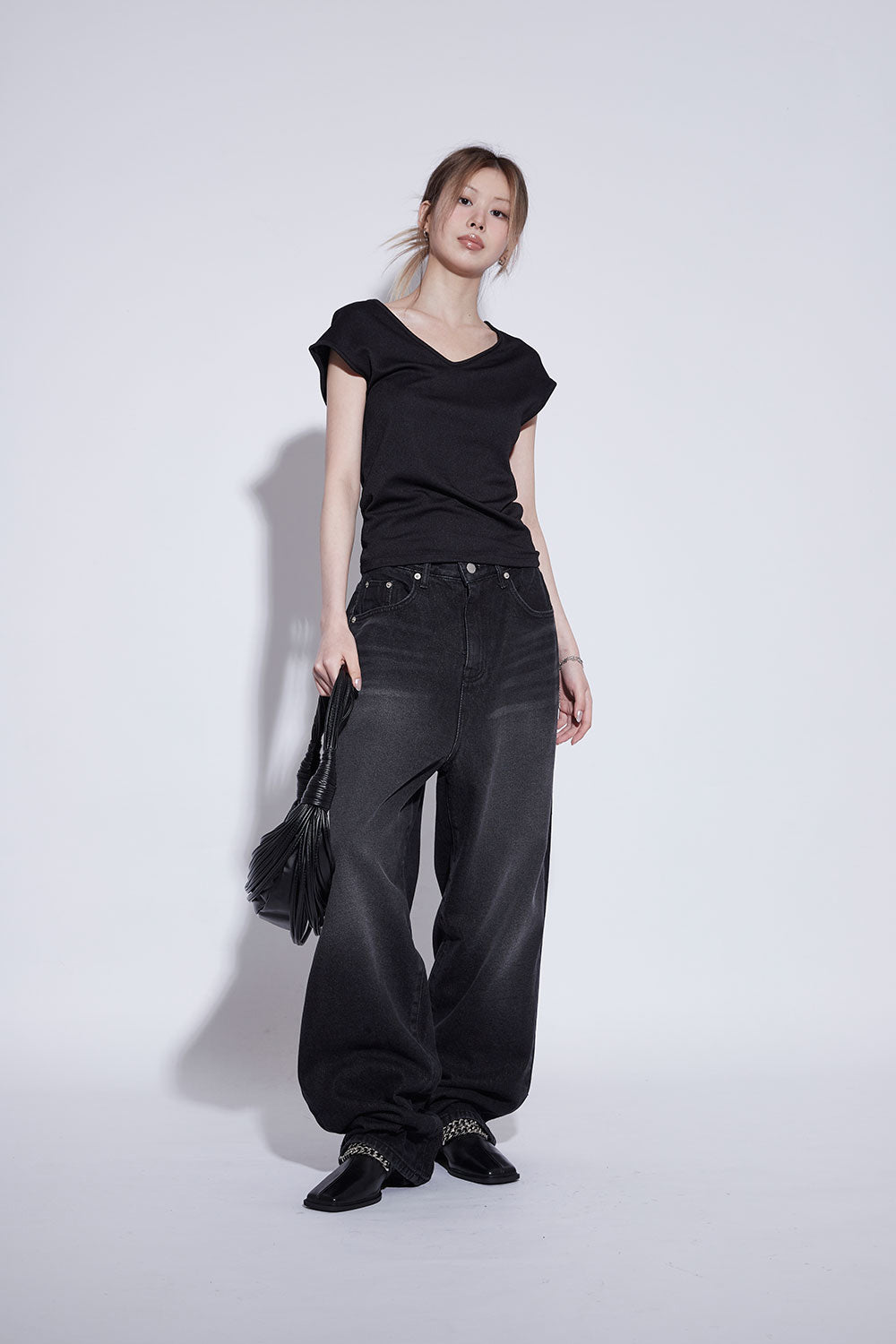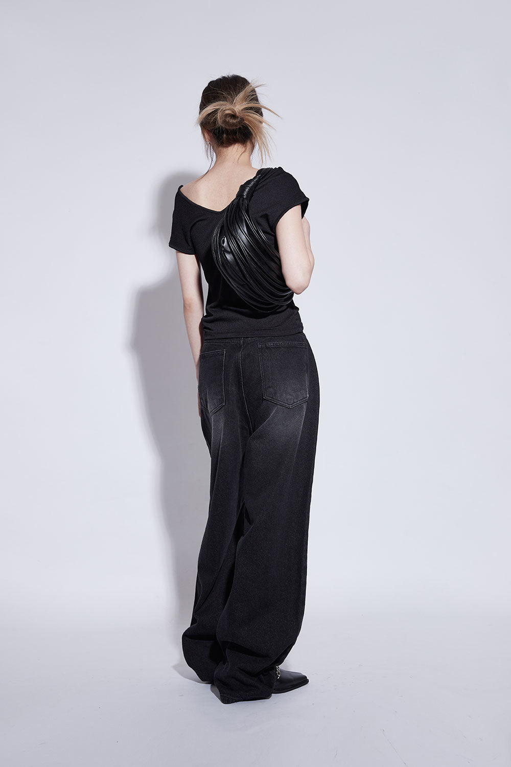 black washing wide jeans