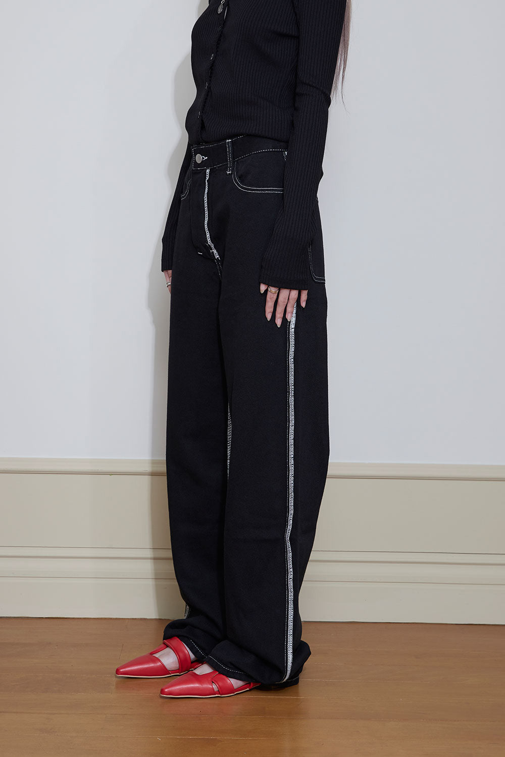 −S (ウエスト63 ヒップ100 股上30 股下76 もも周り54 裾周り48 総丈106)