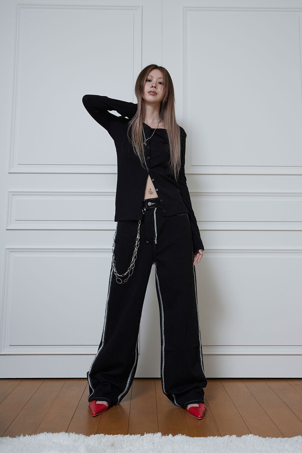 −L (ウエスト70 ヒップ106 股上31 股下78.5 もも周り56 裾周り50 総丈109.5)