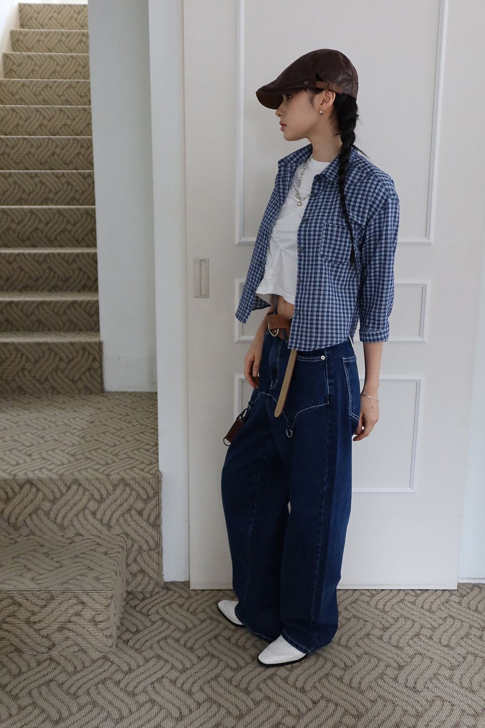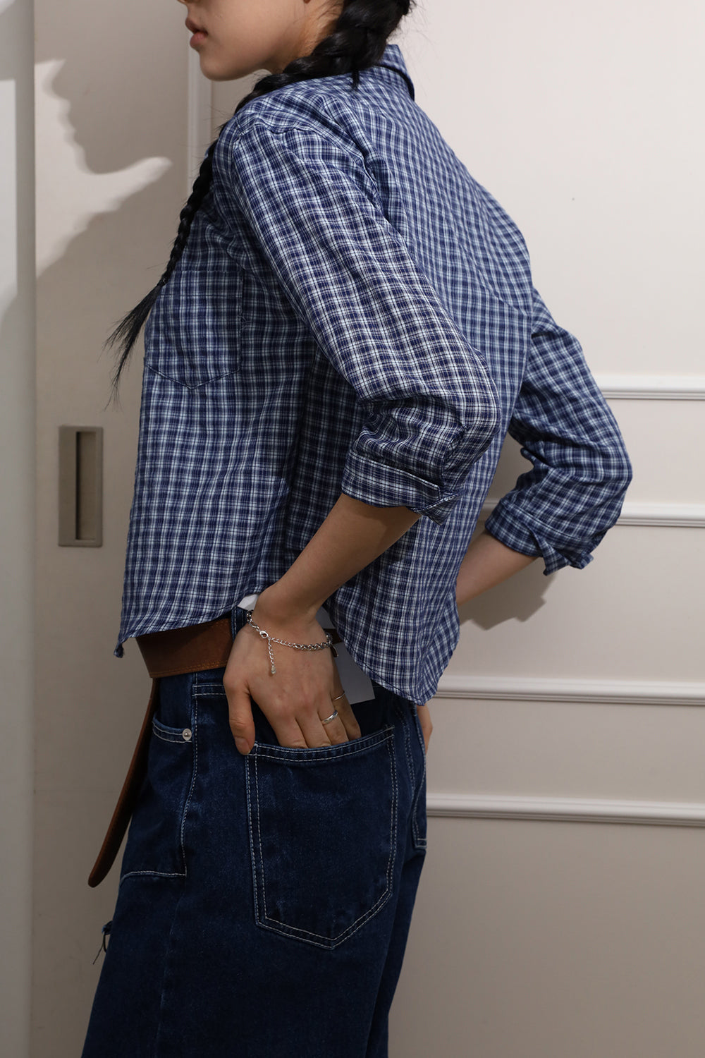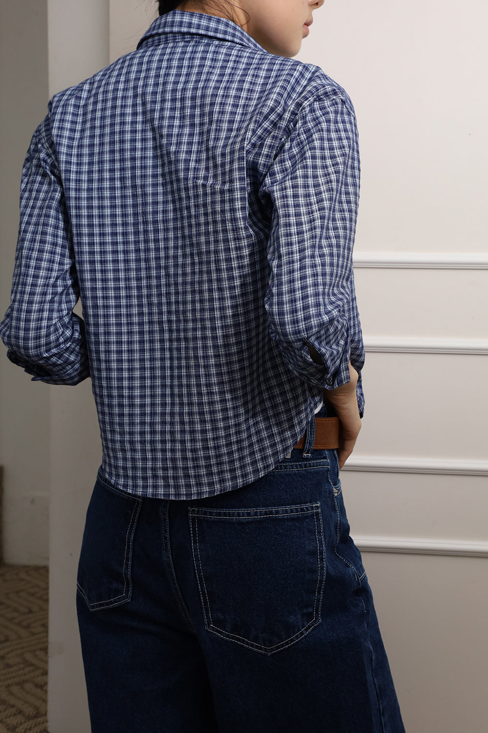 チェッククロップミディシャツ