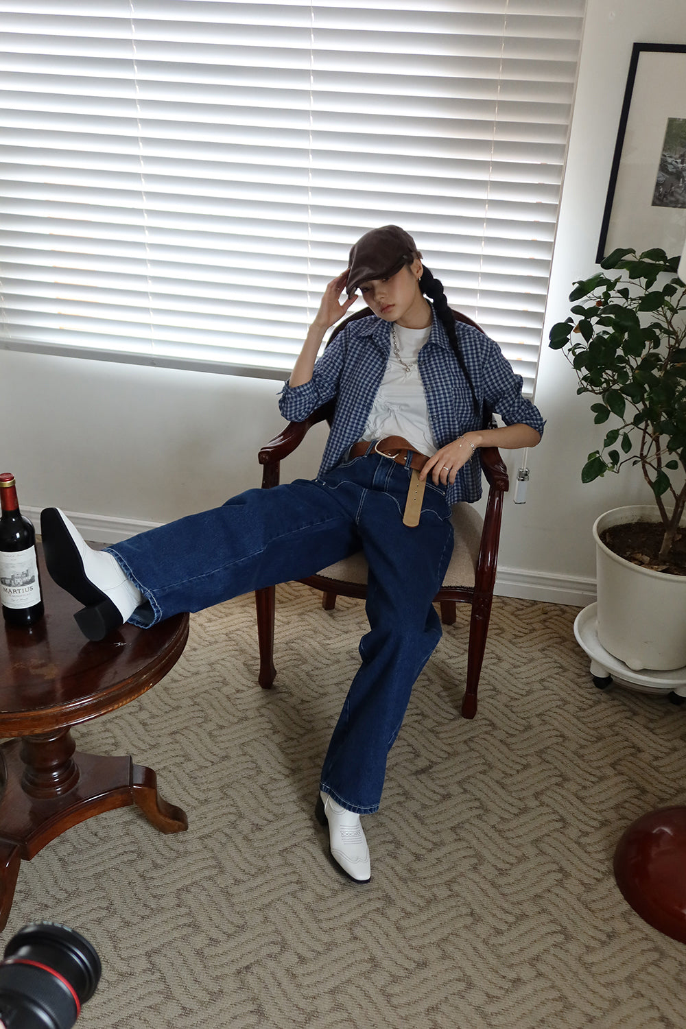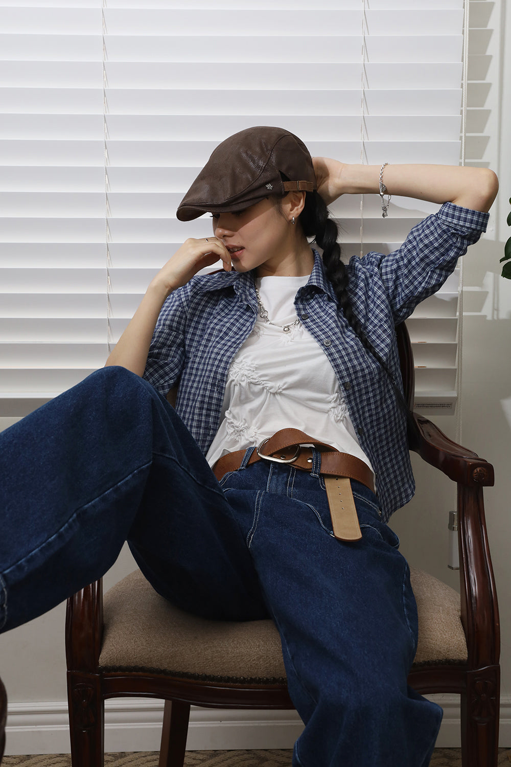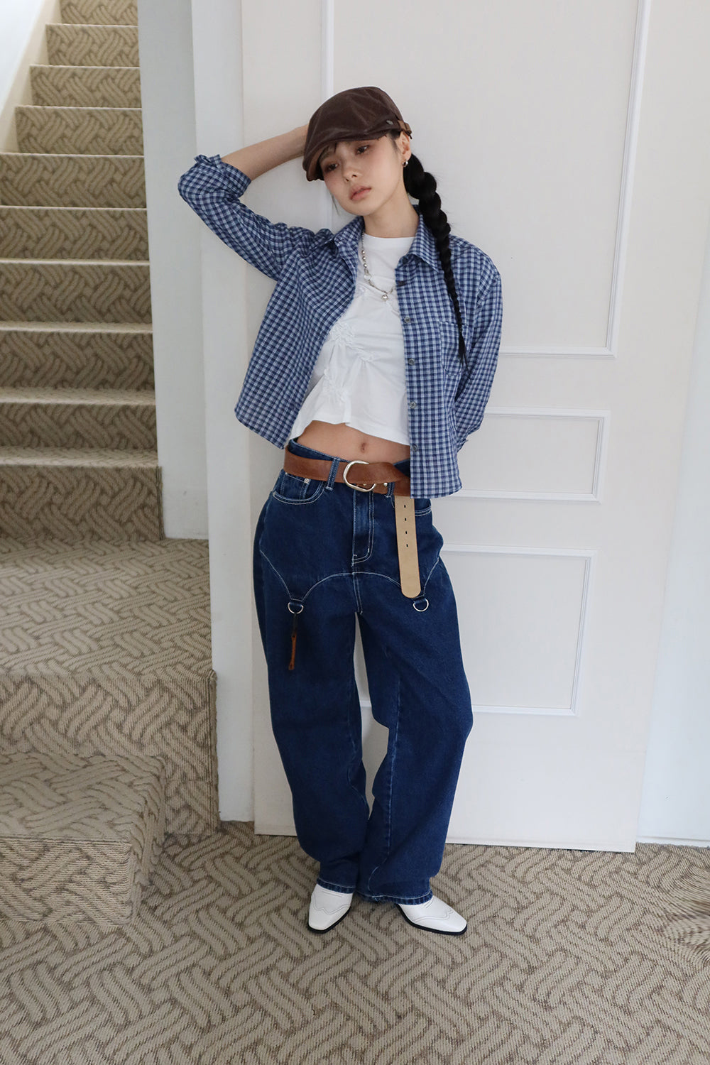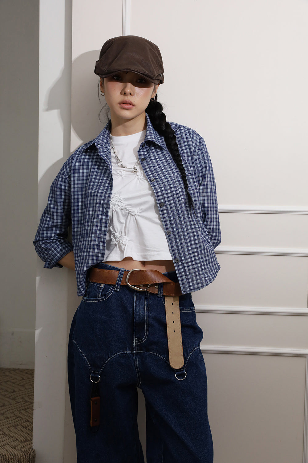 チェッククロップミディシャツ