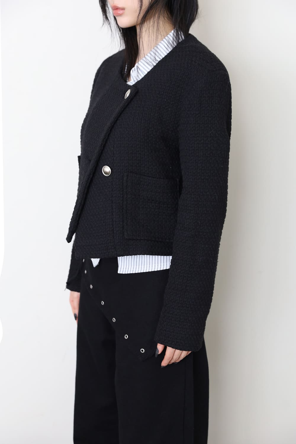 Cotton diagonal tweed jacket