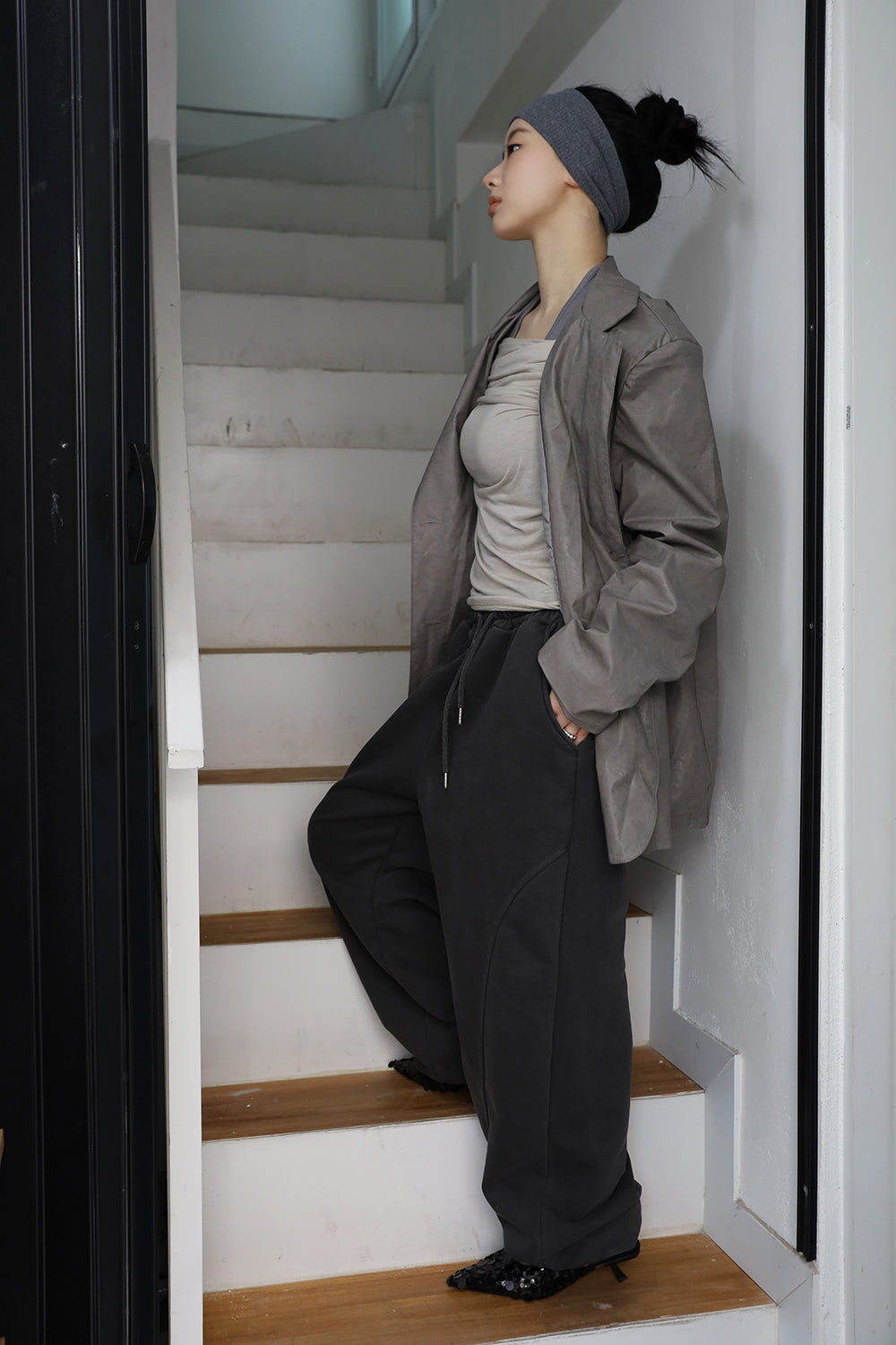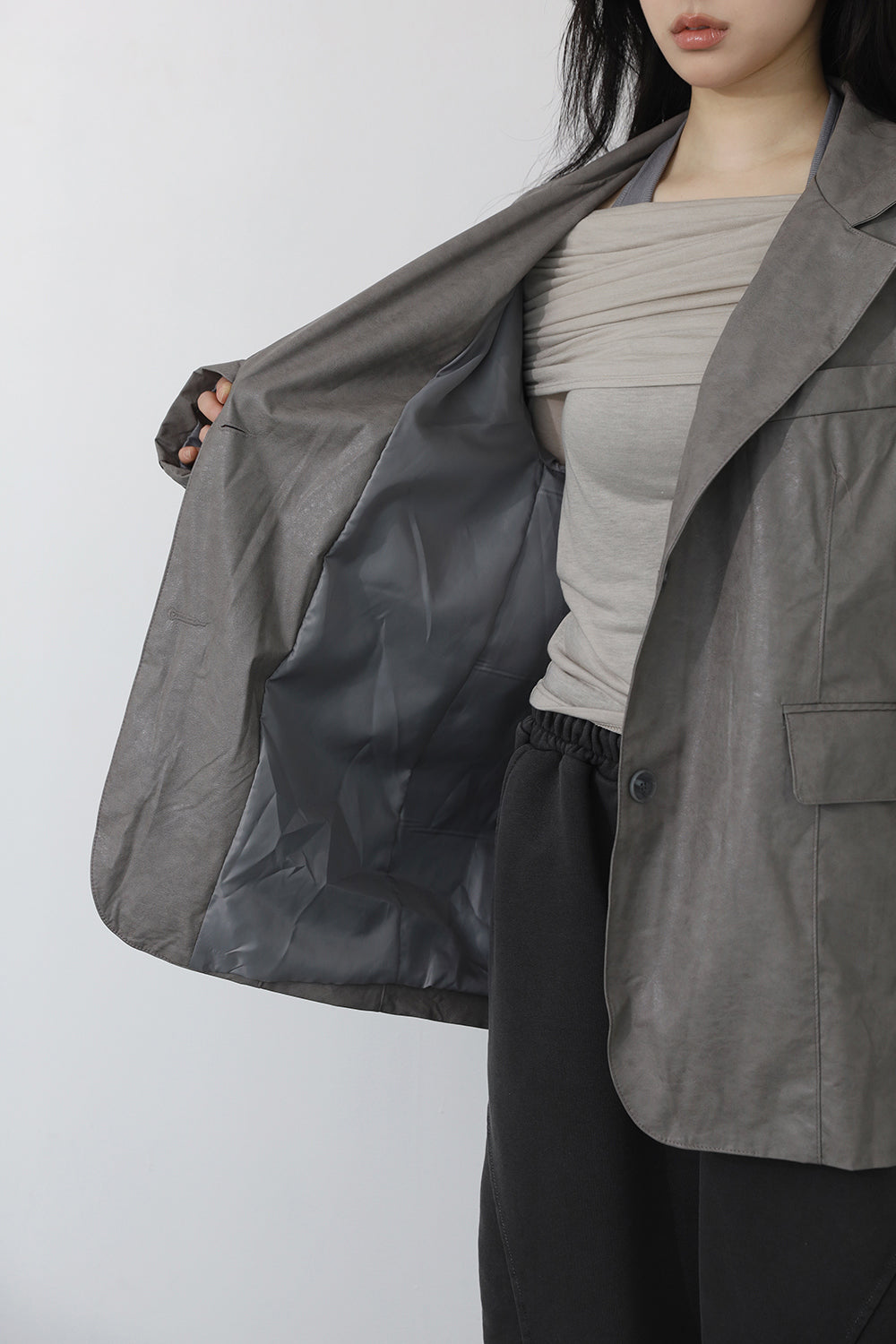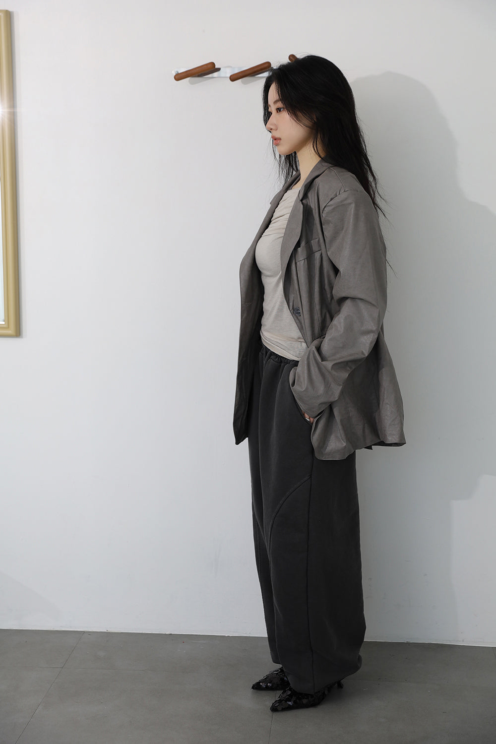 -162, 164cm/44size / Gray / Brown