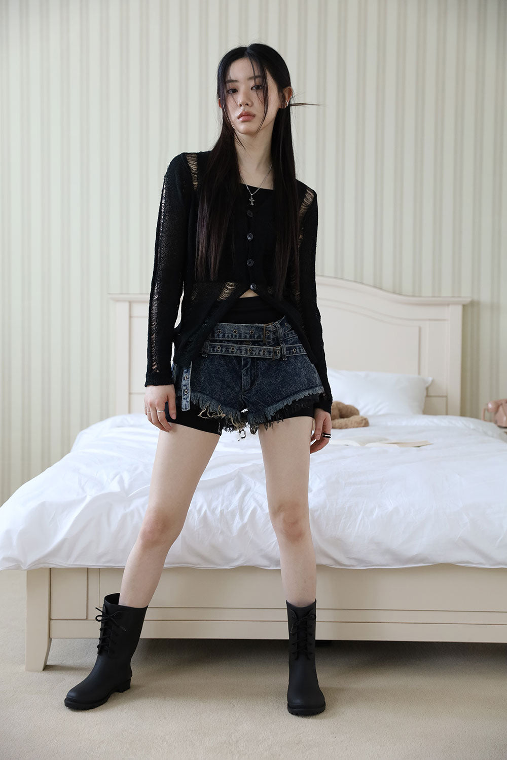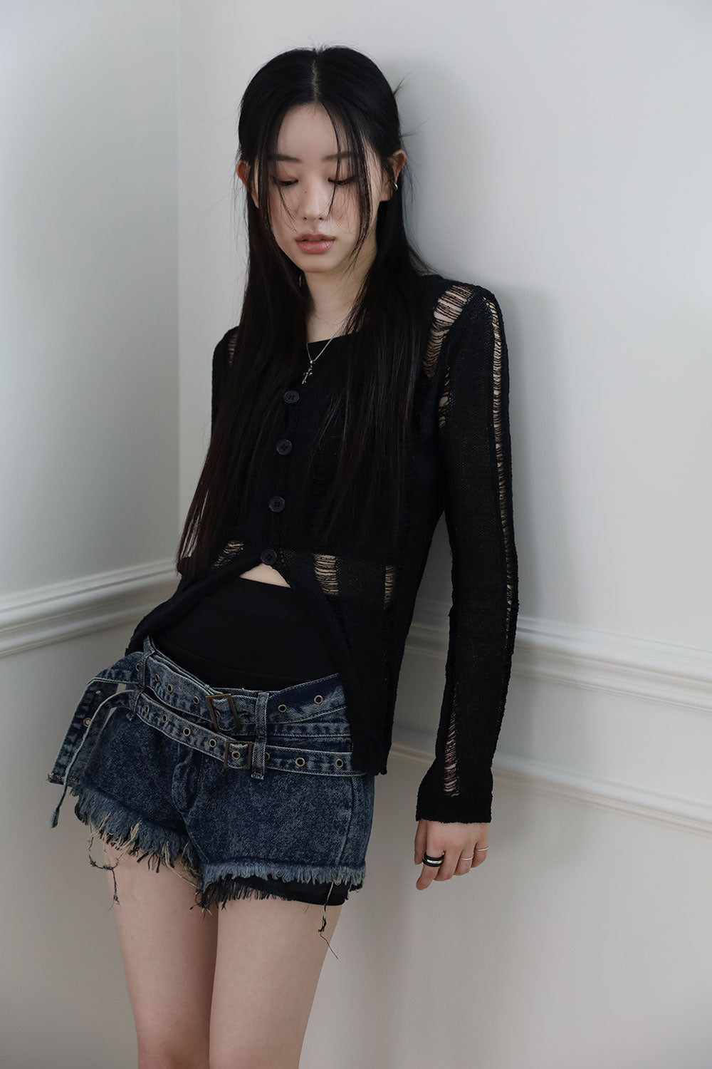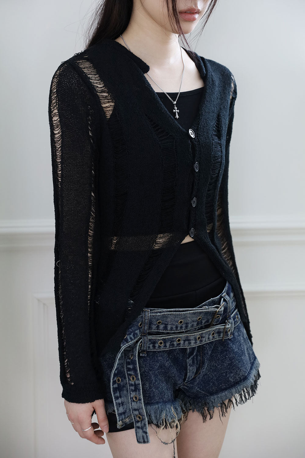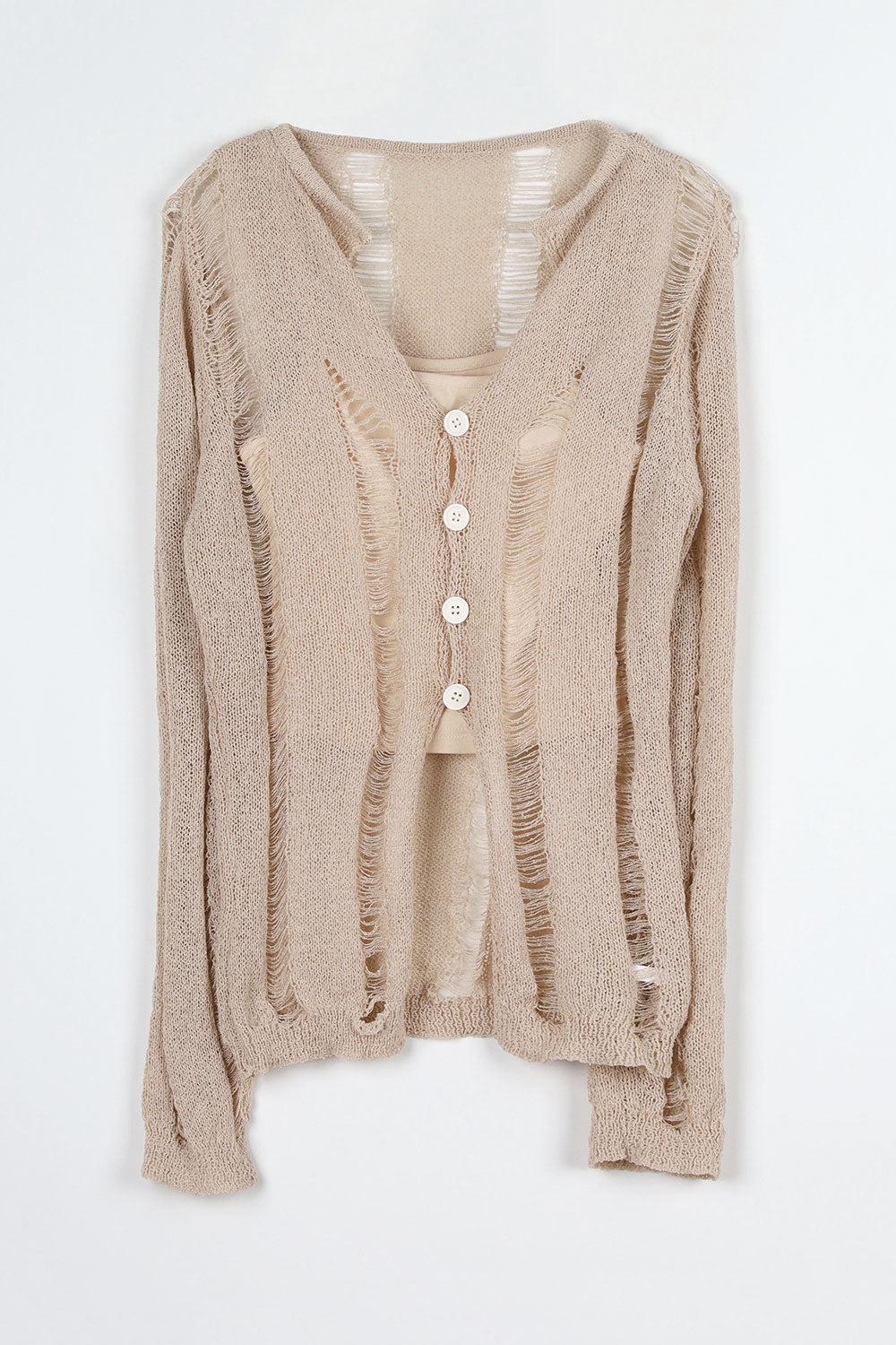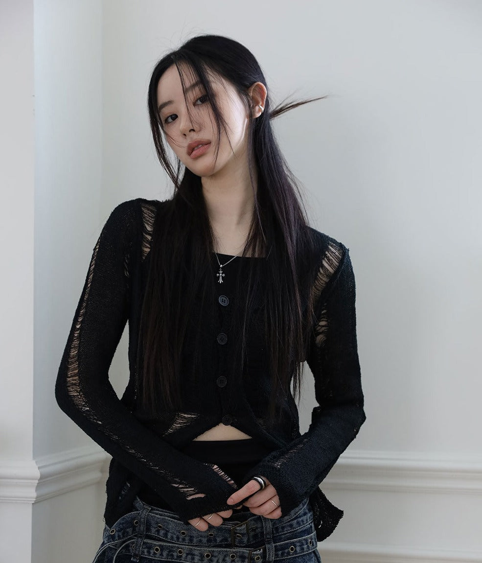 Damage Sleeveless Cardigan Set