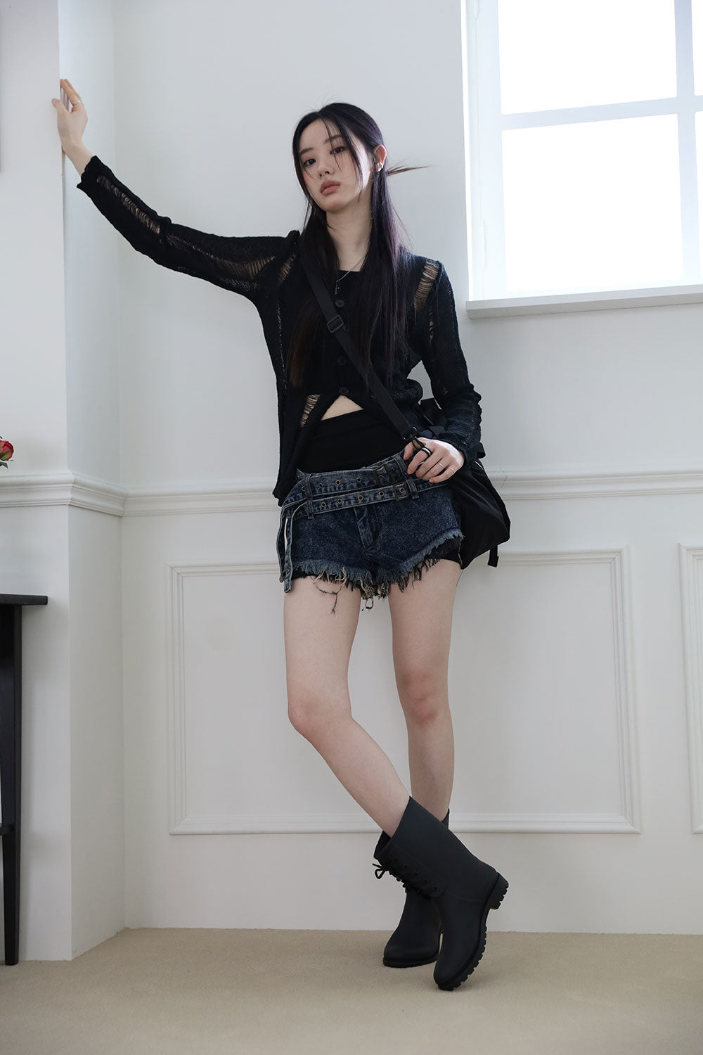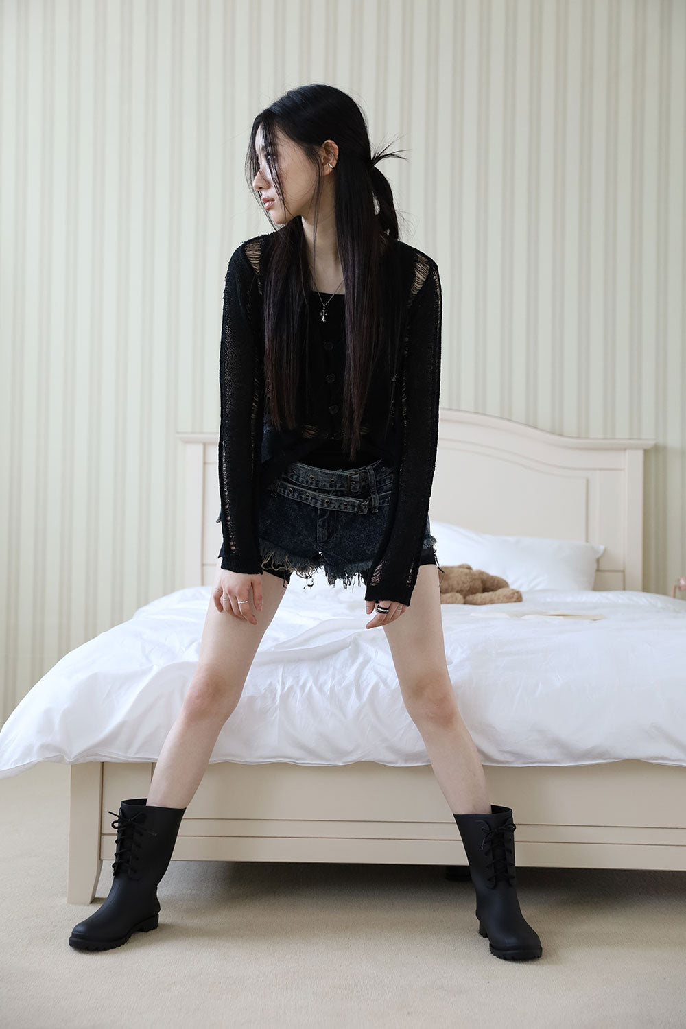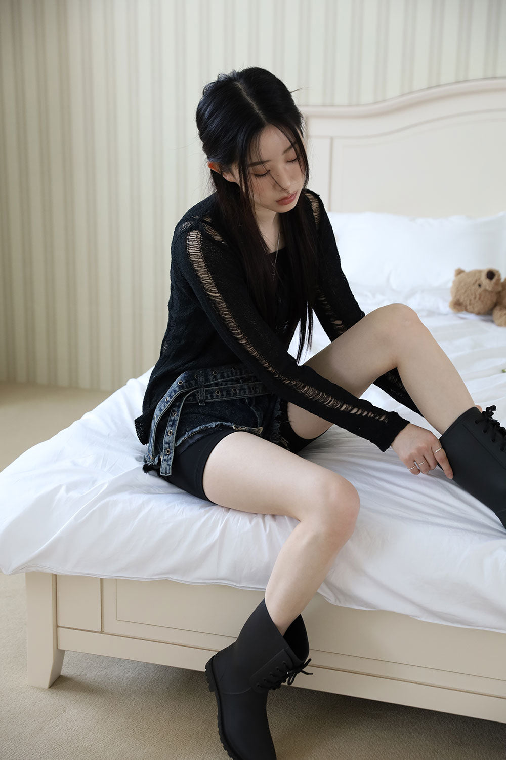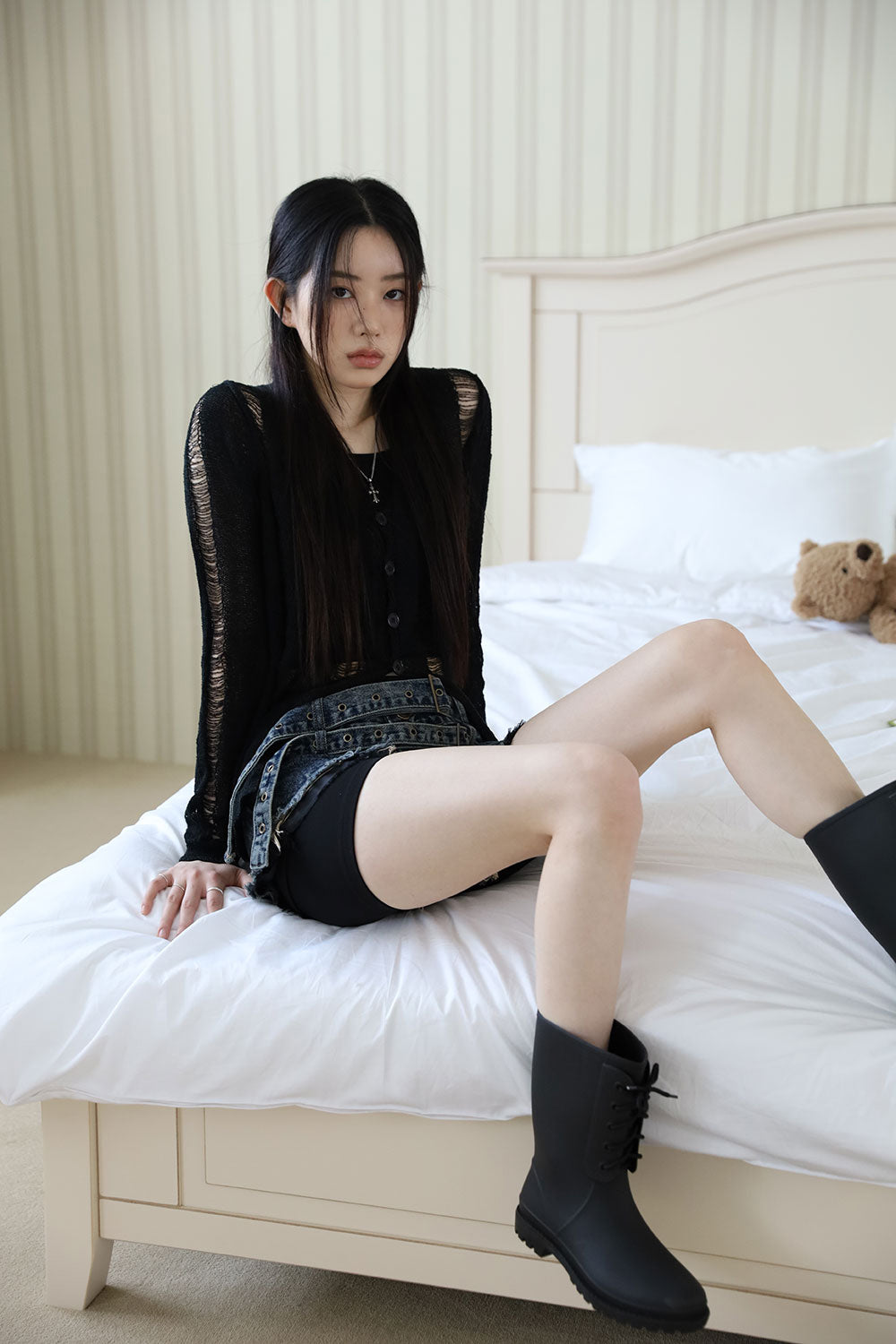 Damage Sleeveless Cardigan Set