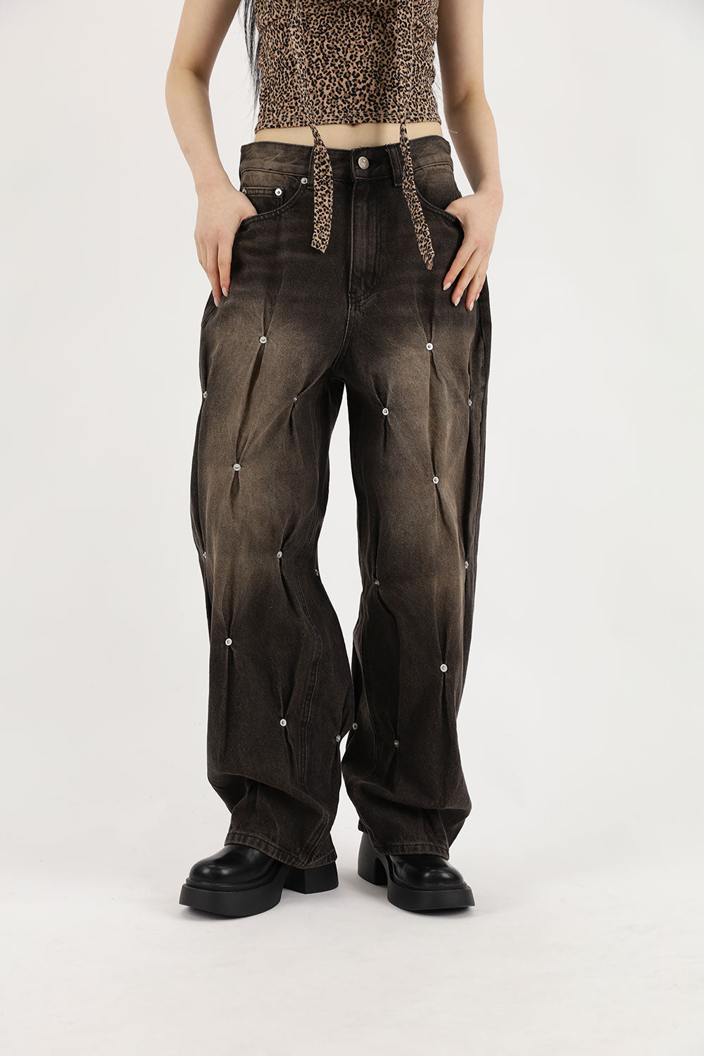 Dia rivet denim pants