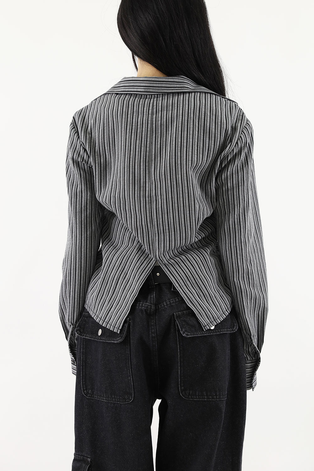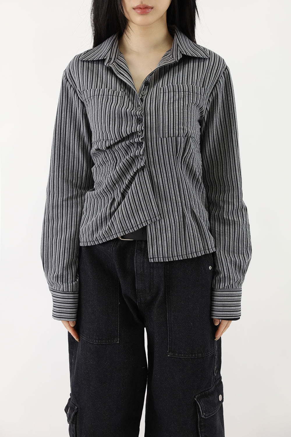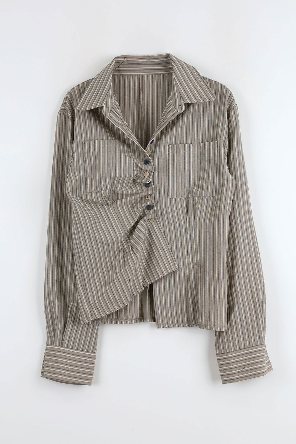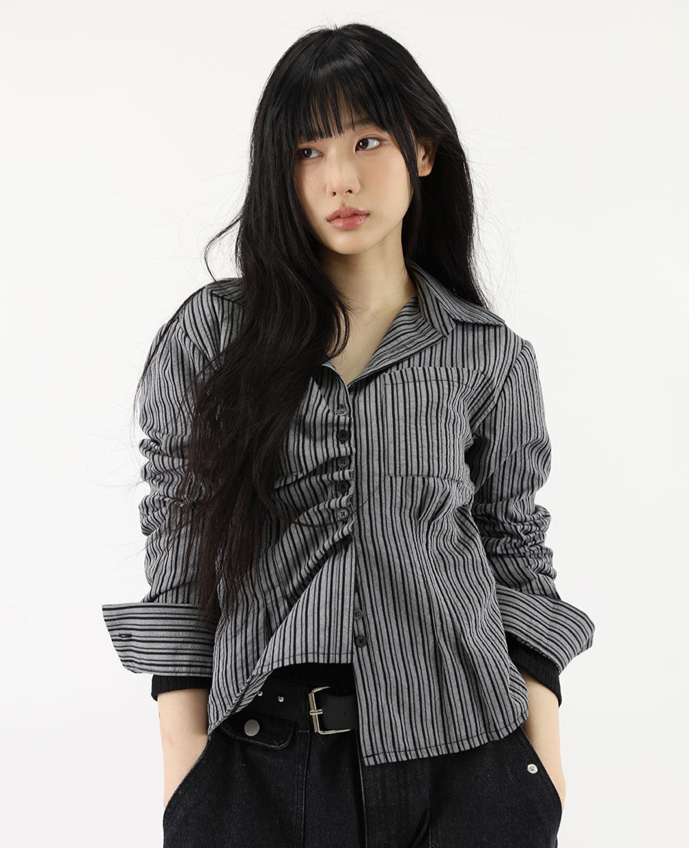 ダイアゴナルフリルストライプシャツ