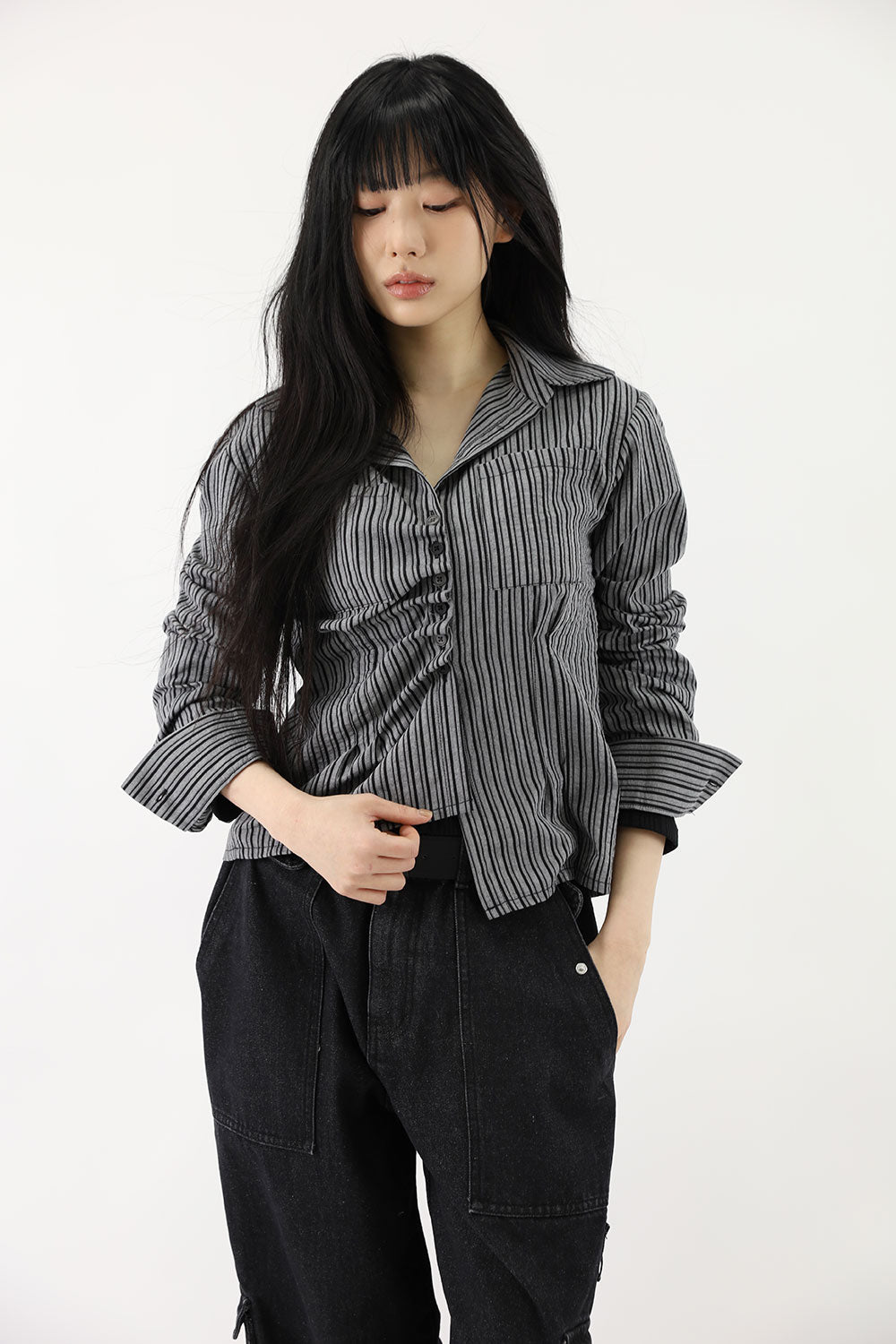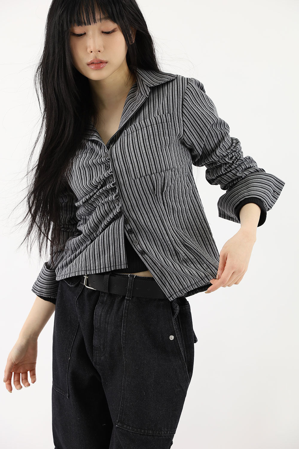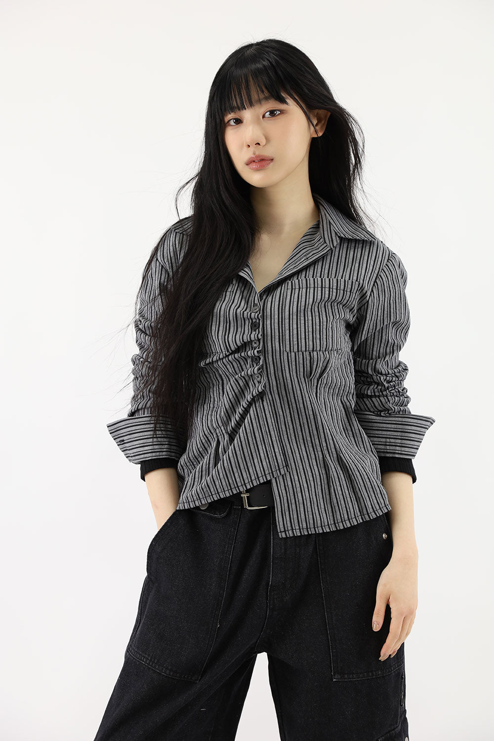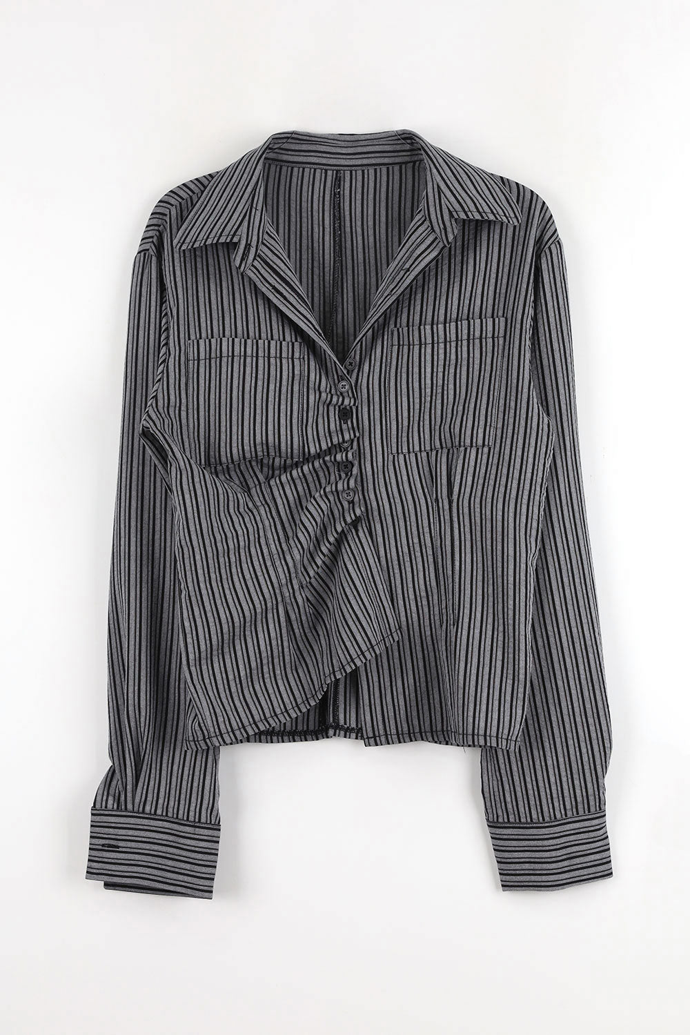 ダイアゴナルフリルストライプシャツ