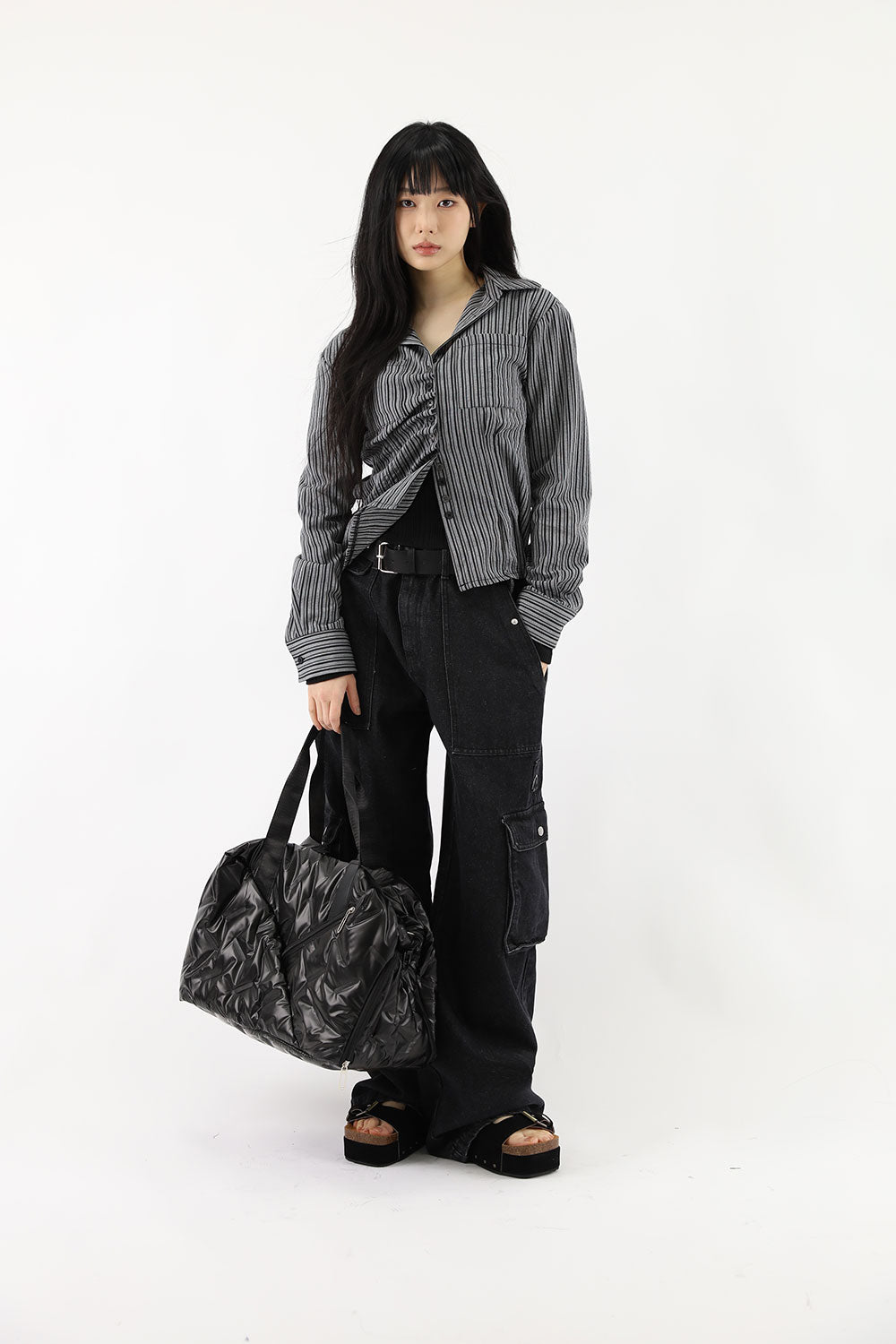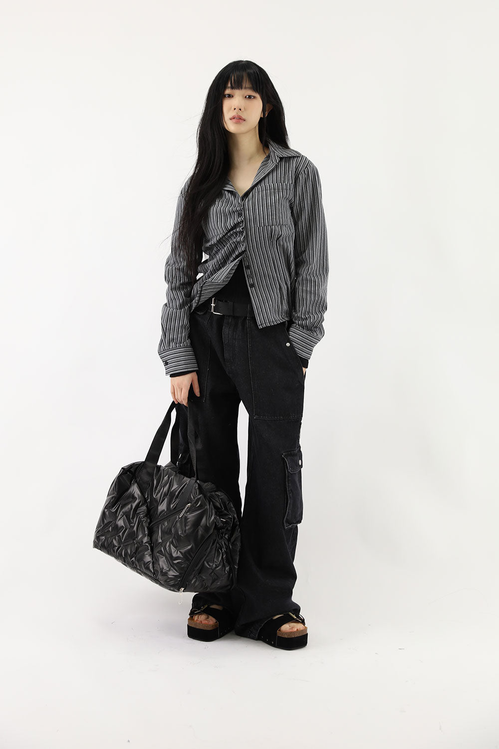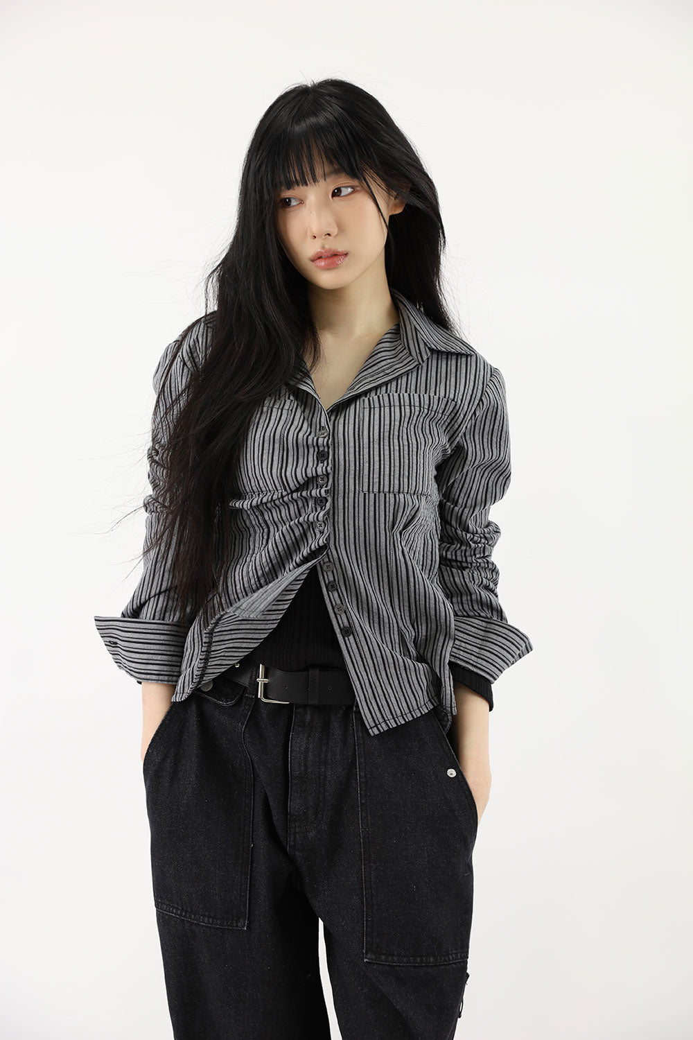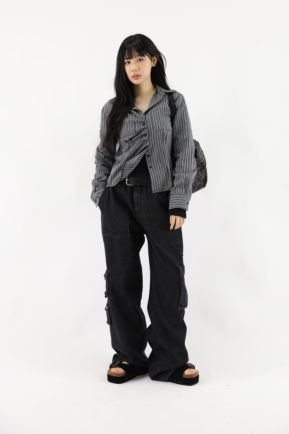 ダイアゴナルフリルストライプシャツ