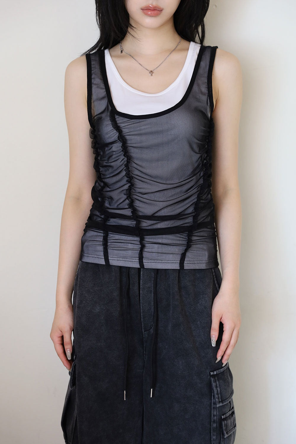 Double mesh shirring sleeveless