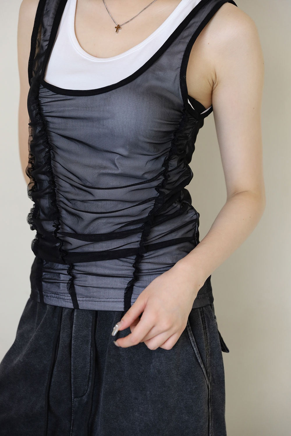レイヤードメッシュシャーリングノースリーブ