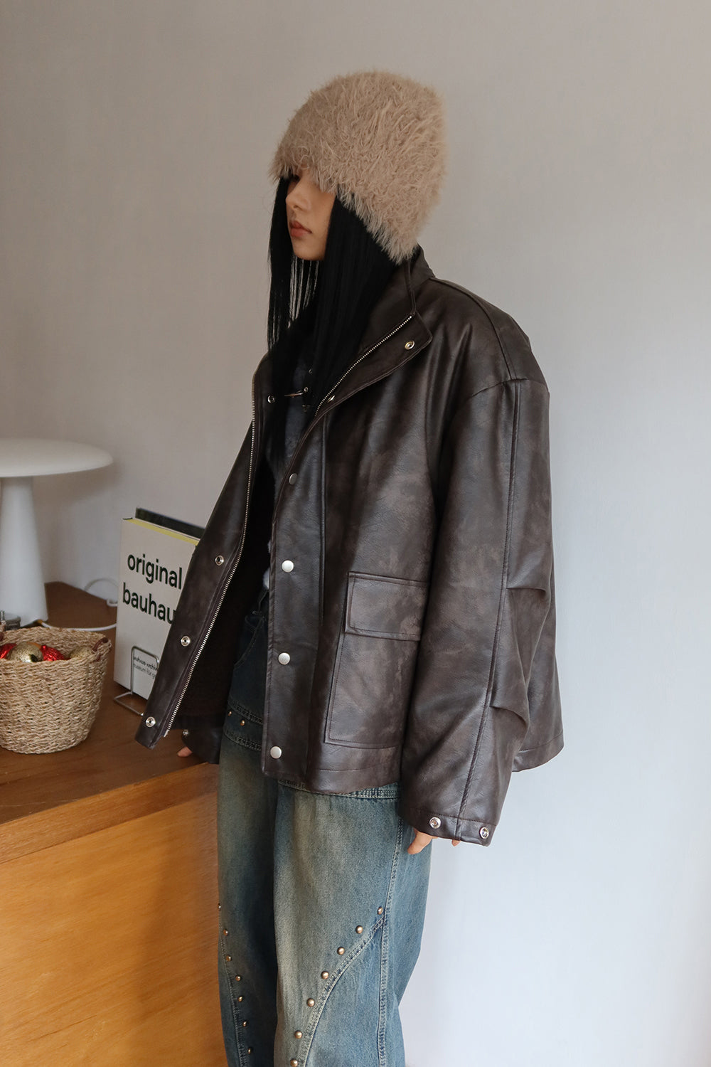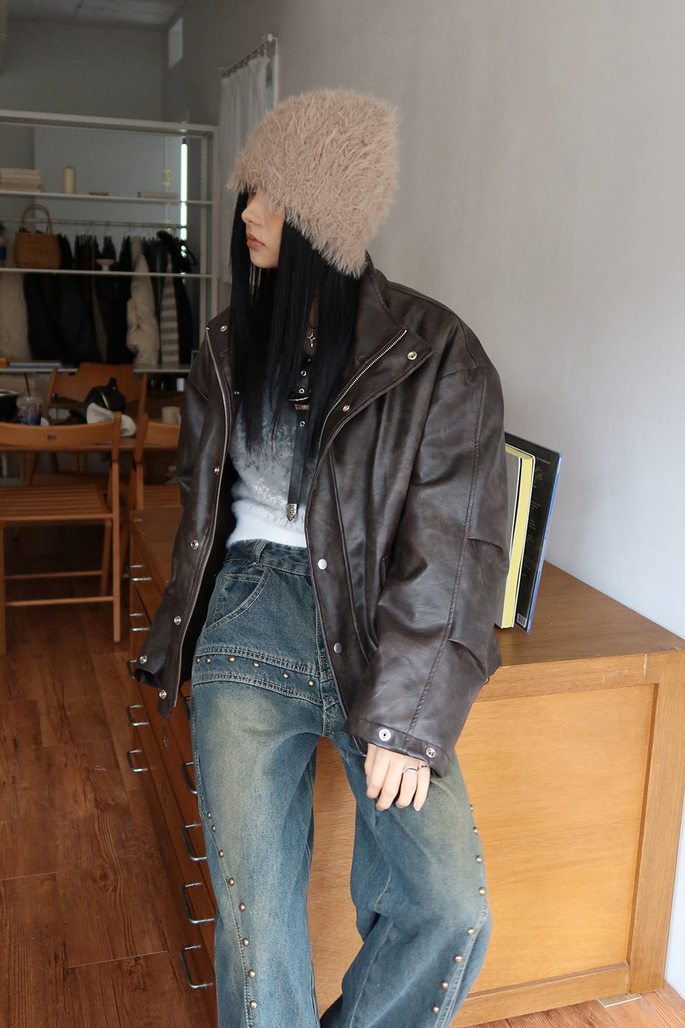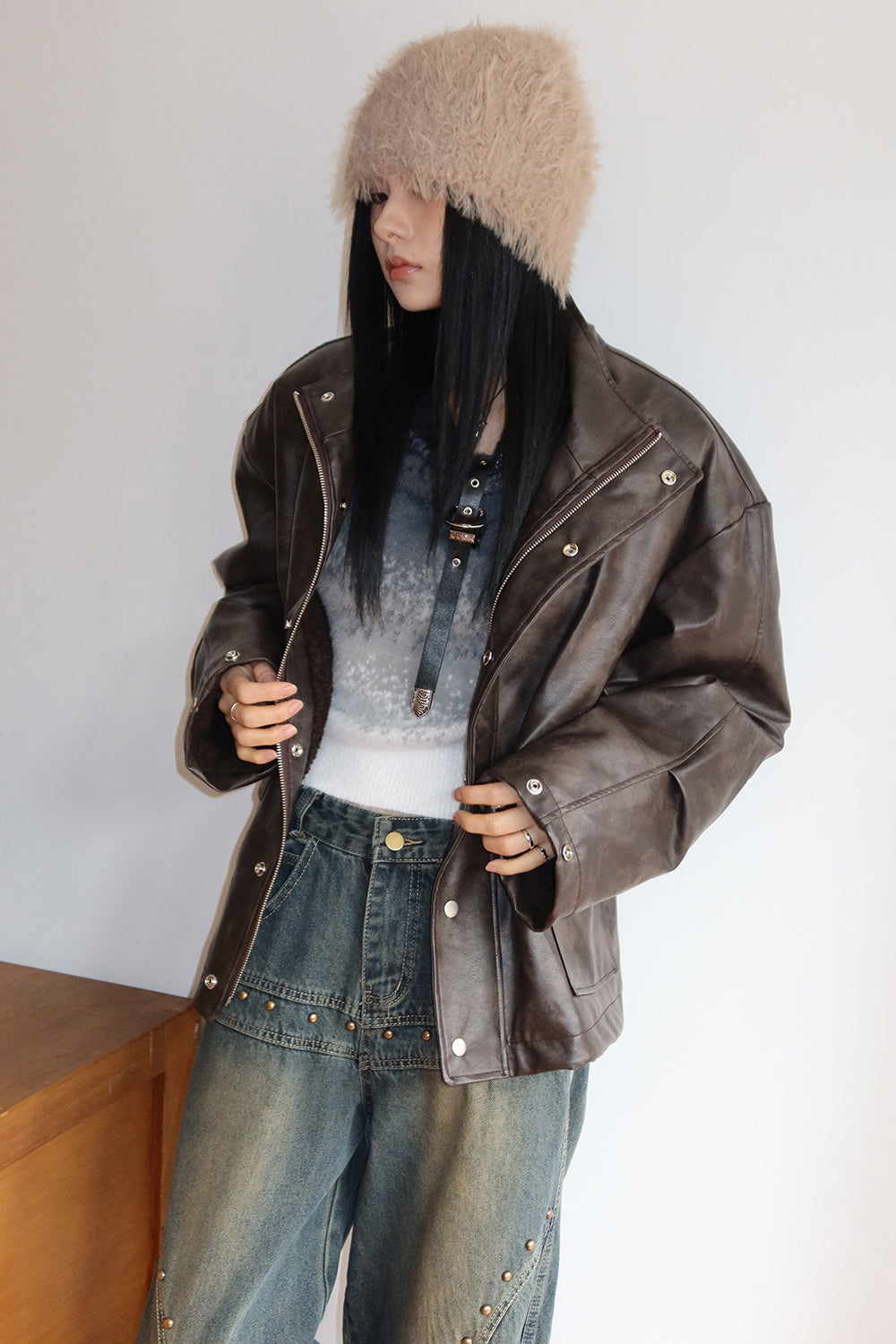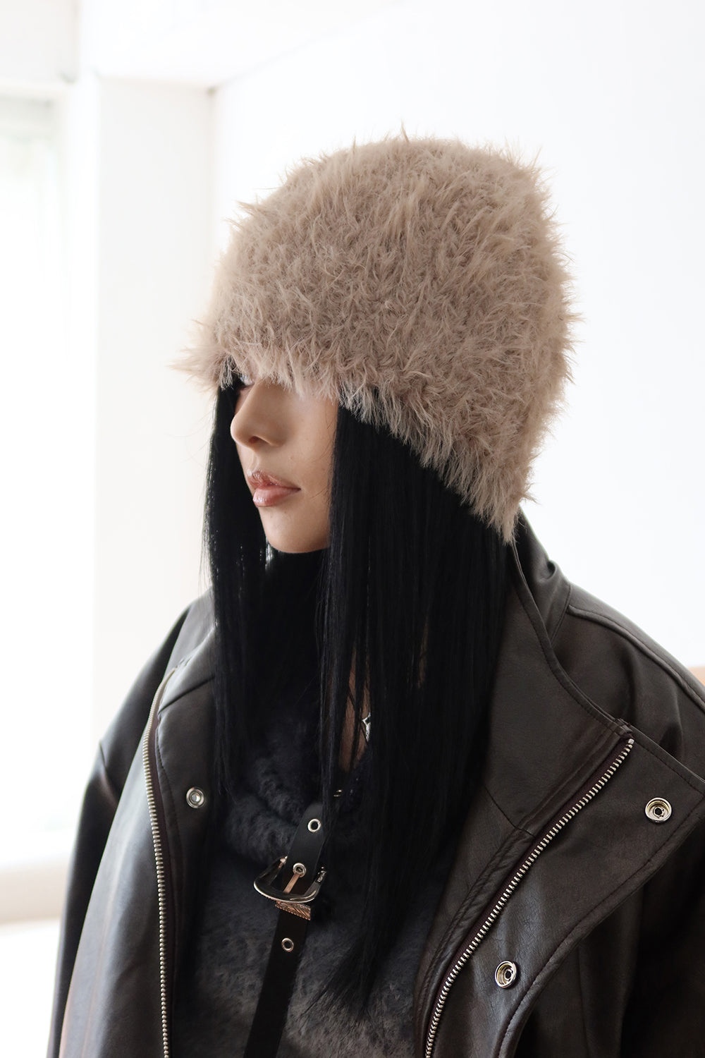 Fluffy fur shawl beanie