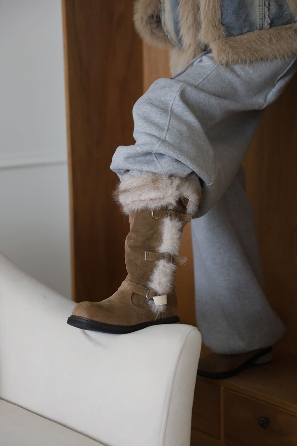 Fur lining soft long boots