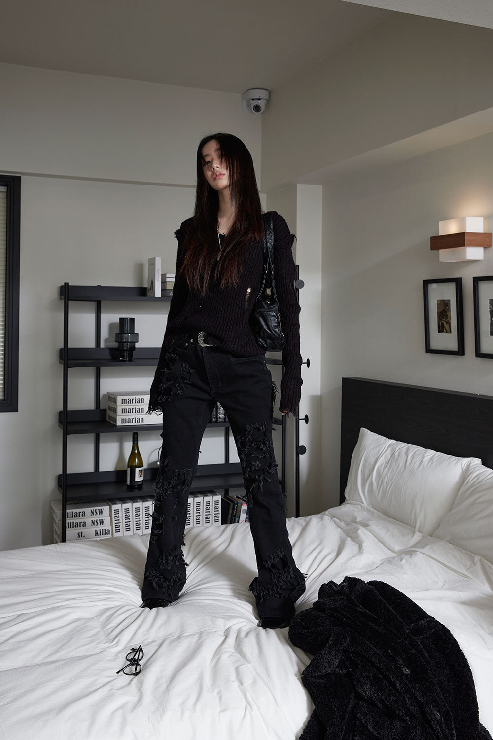 −M (ウエスト81 ヒップ91 股上25.5 股下82 もも周り42 裾周り48 総丈107.5)